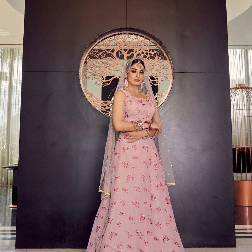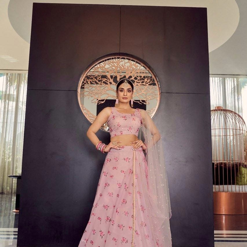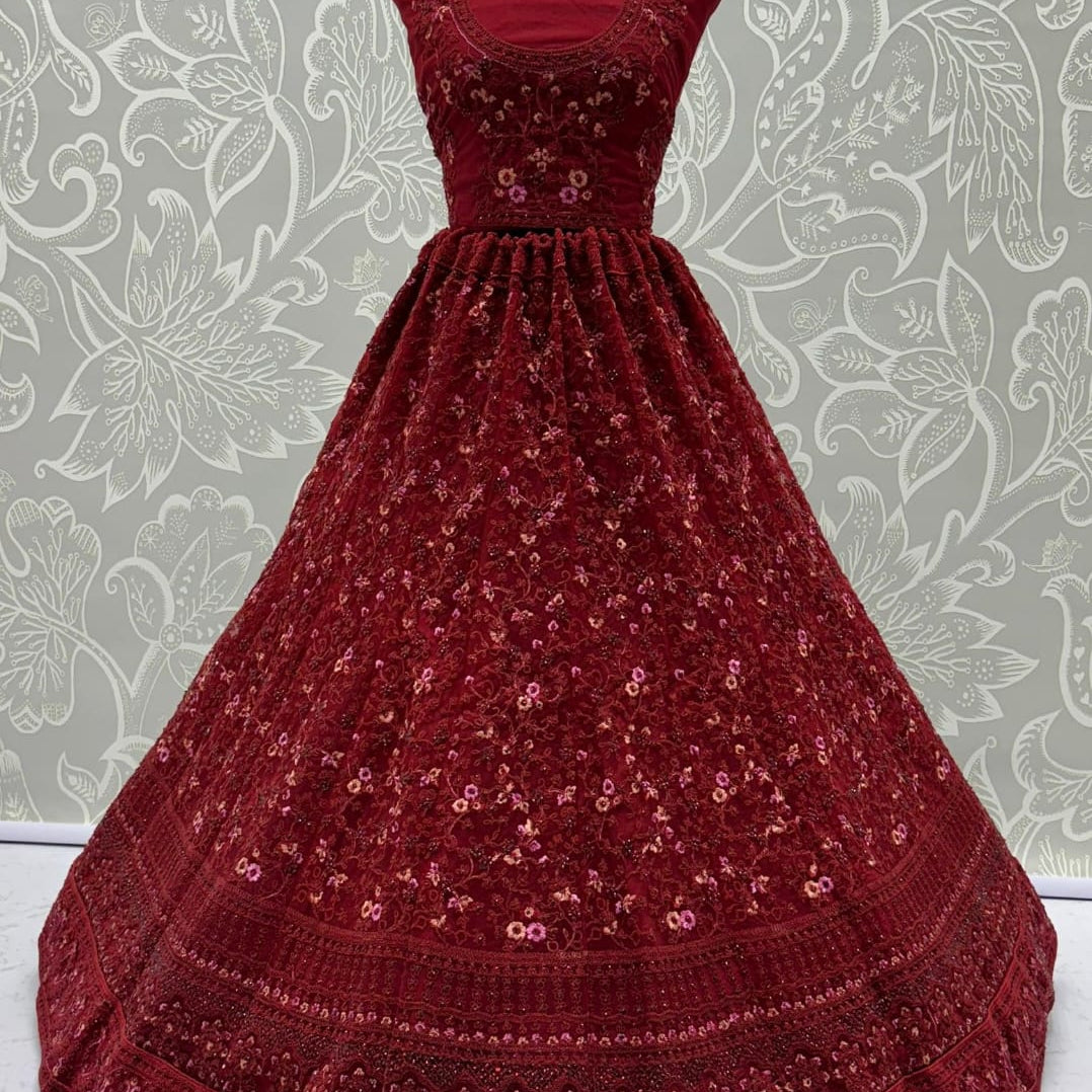Beautiful Flower Embroidered Work Lehenga