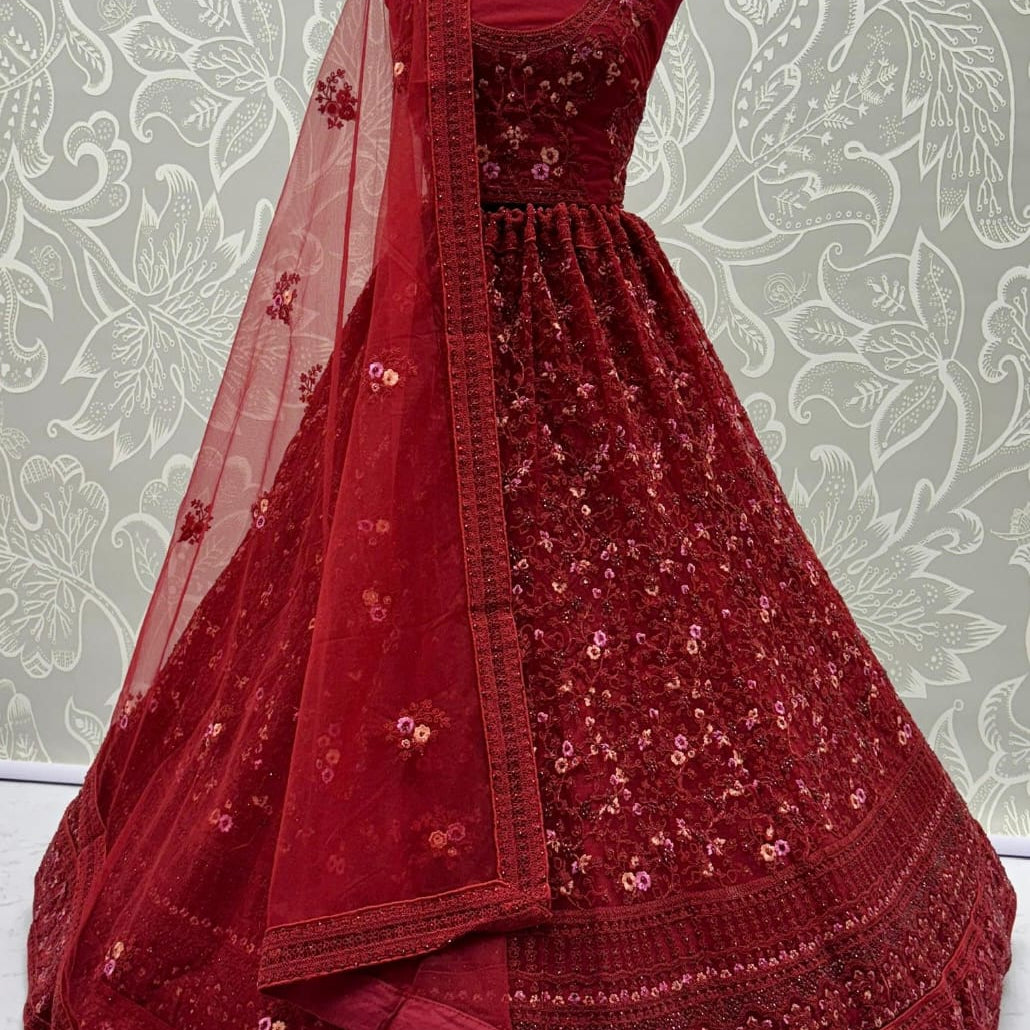 Beautiful Red Embroidery Partywear Lehenga Choli