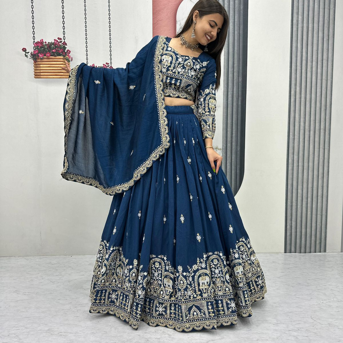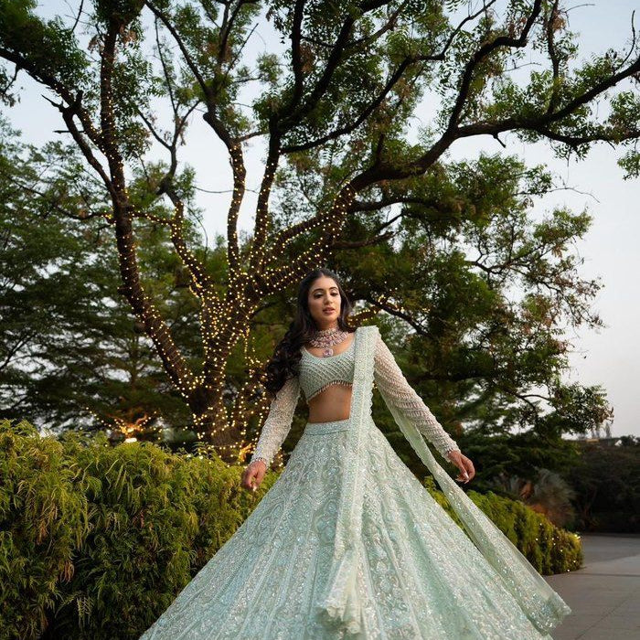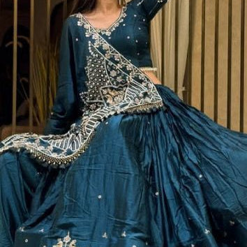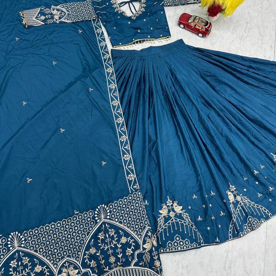 Teal Blue Festive Silk Lehenga