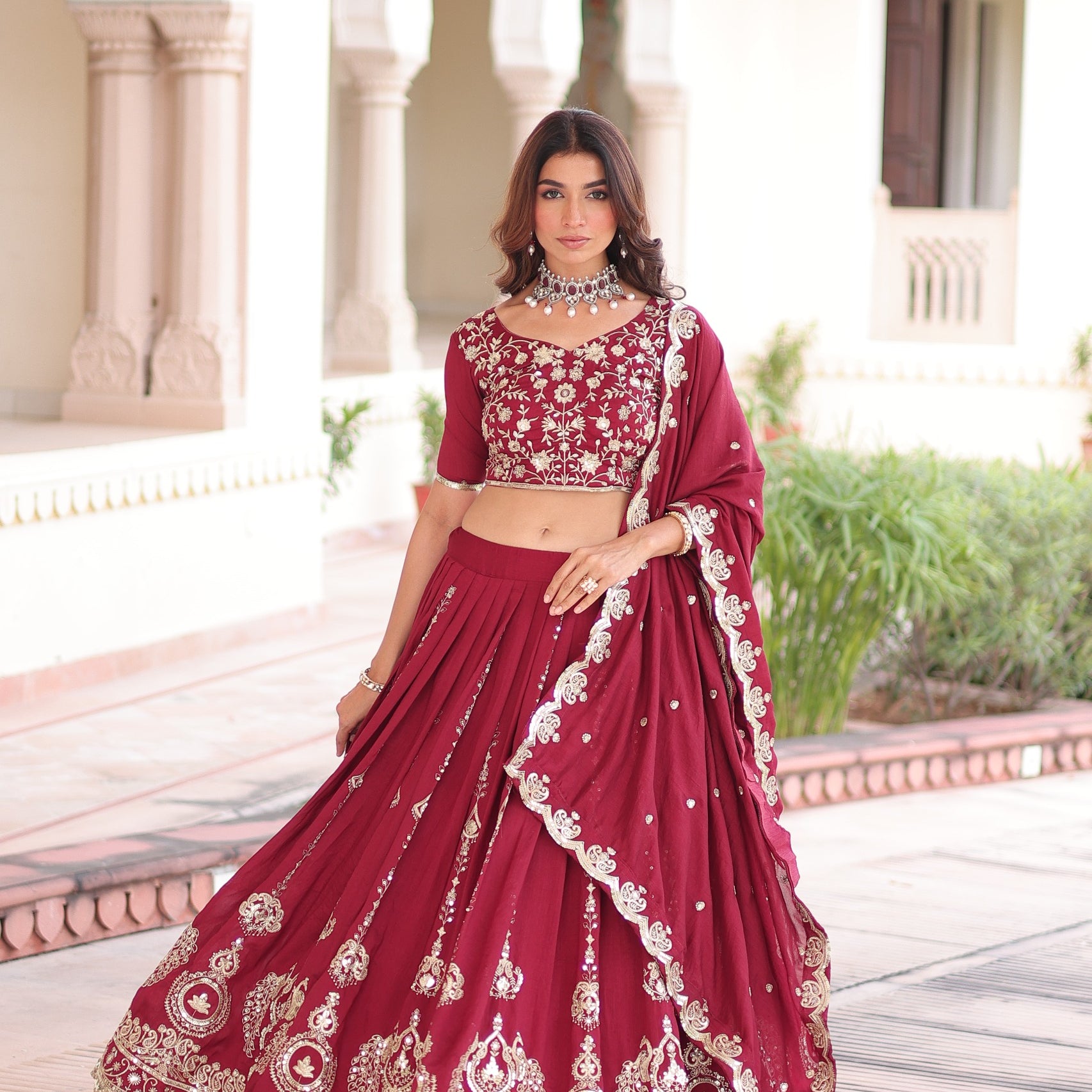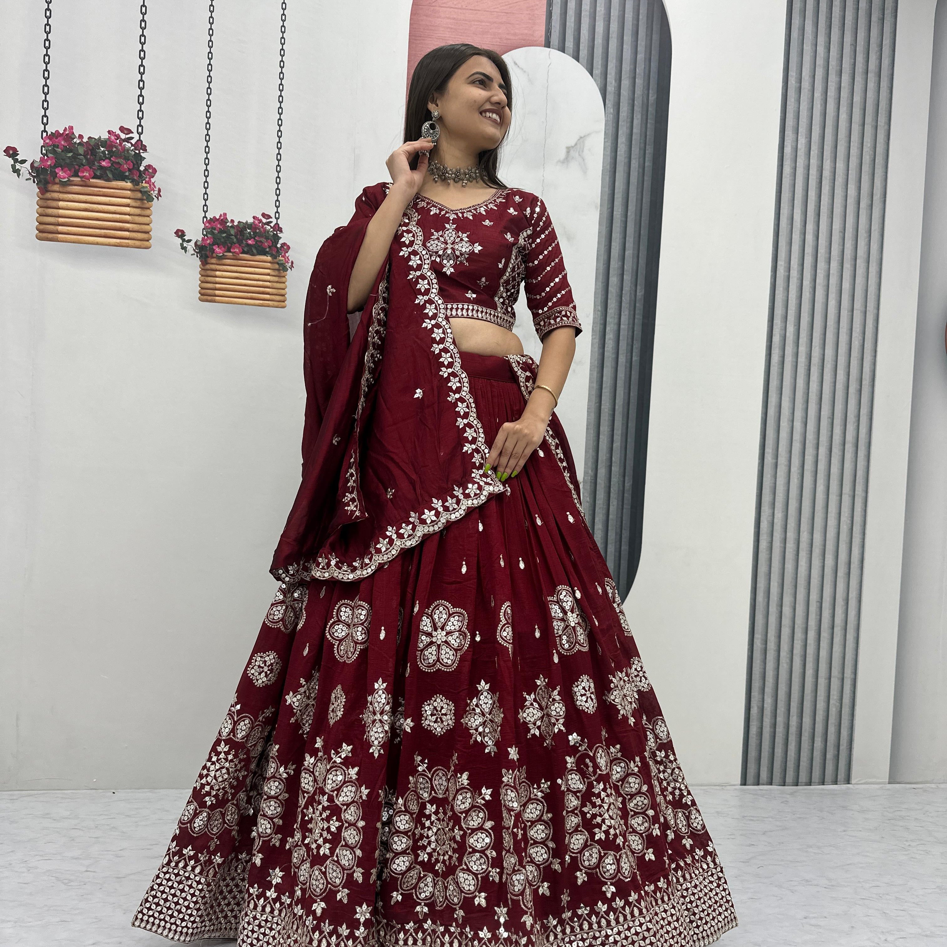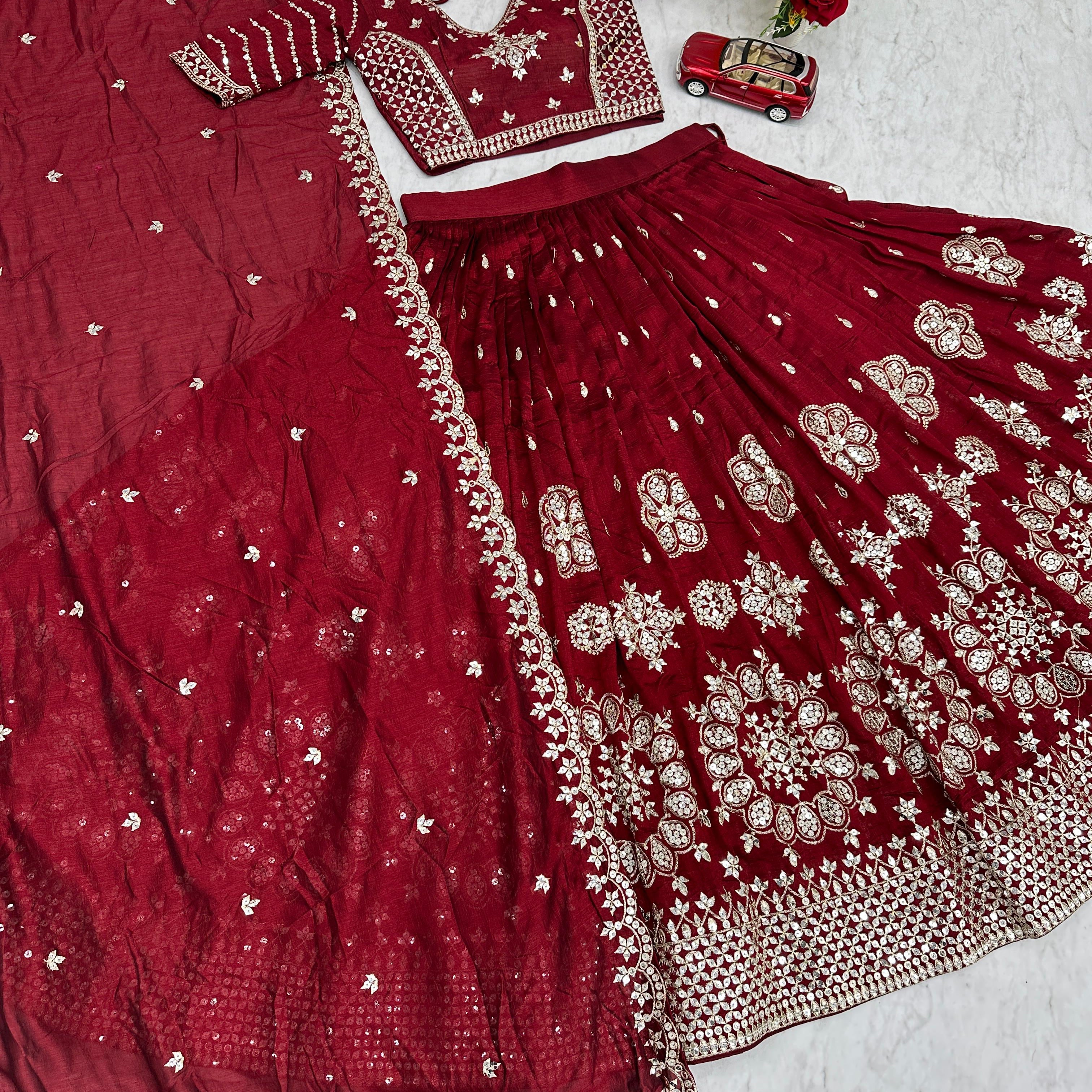 Maroon Wedding Embroidered Lehenga
