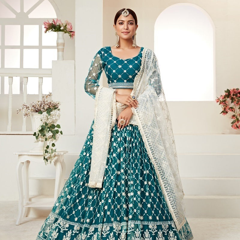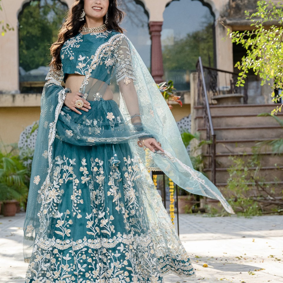 Elegant Teal Net Lehenga Blouse
