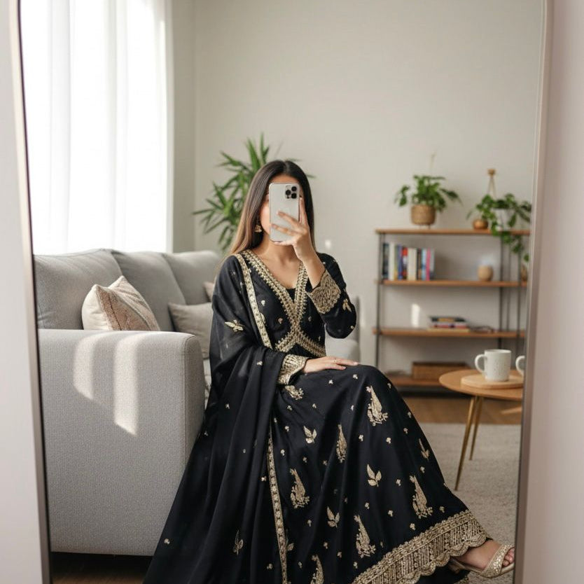 Black Exclusive Georgette Anarkali Gown