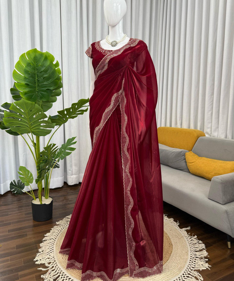 Homeric Maroon Jimmy Choo Saree