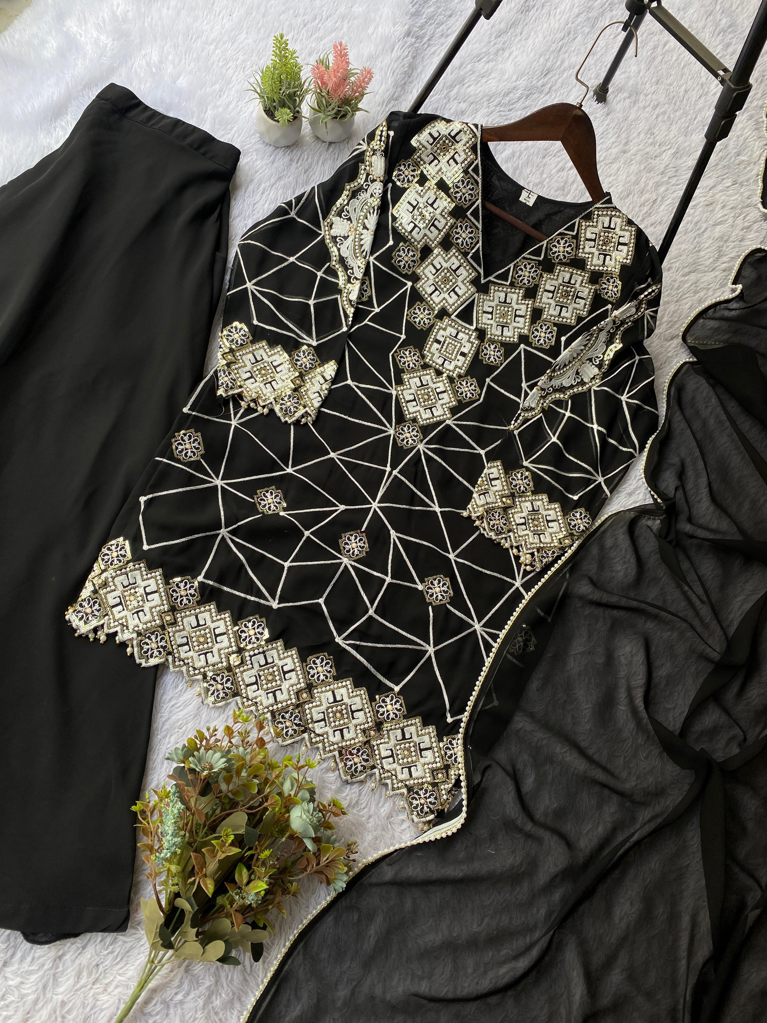 ___✨ EID 🌙 EXCLUSIVE AND TRENDY FOR WEDDING SEASON OUR SEQUENCE EMBROIDERY WORKED TOP, PLAZZO AND DUPATTA ✨___