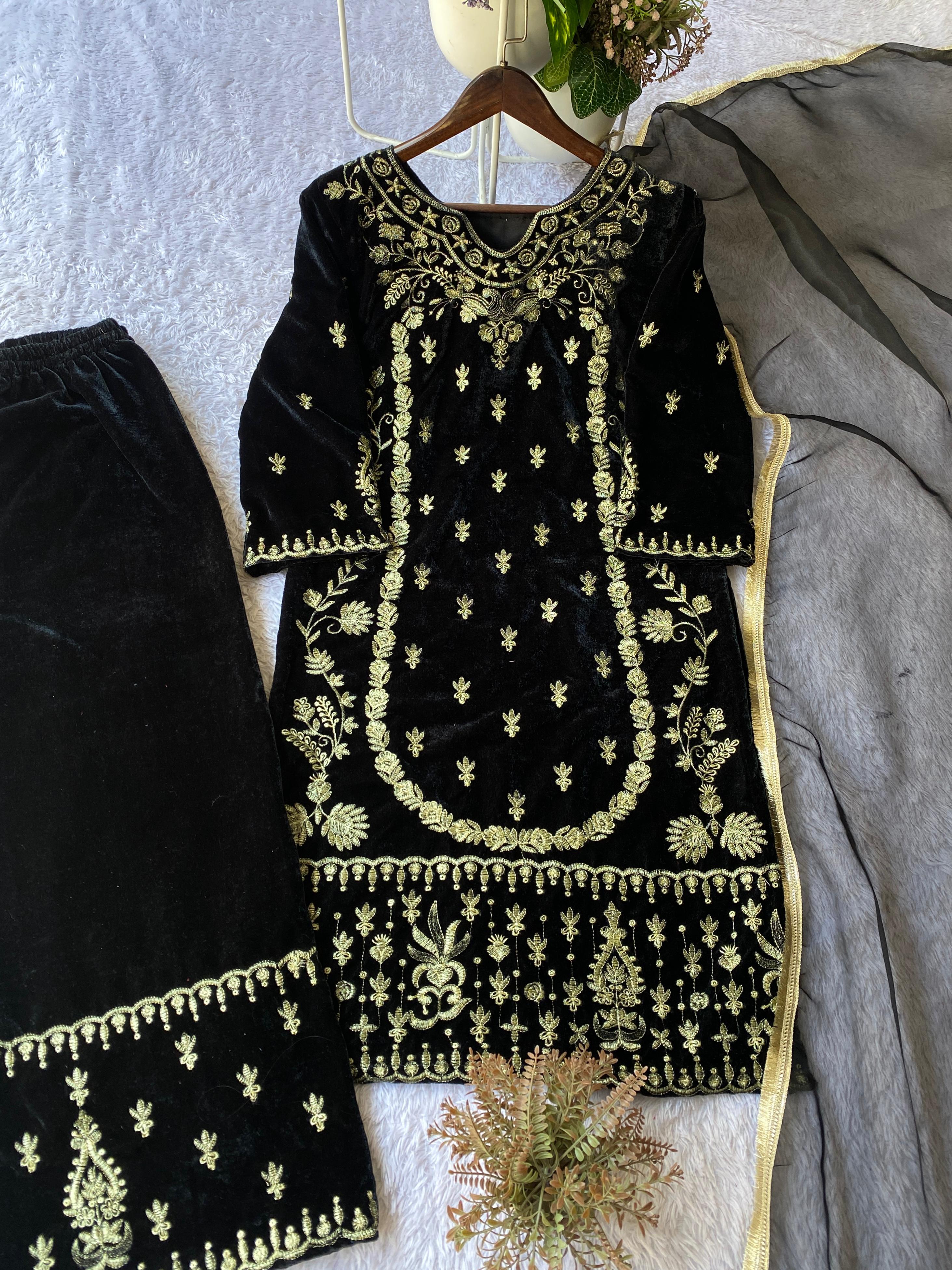Black Velvet Embroidered Patiyala Suit