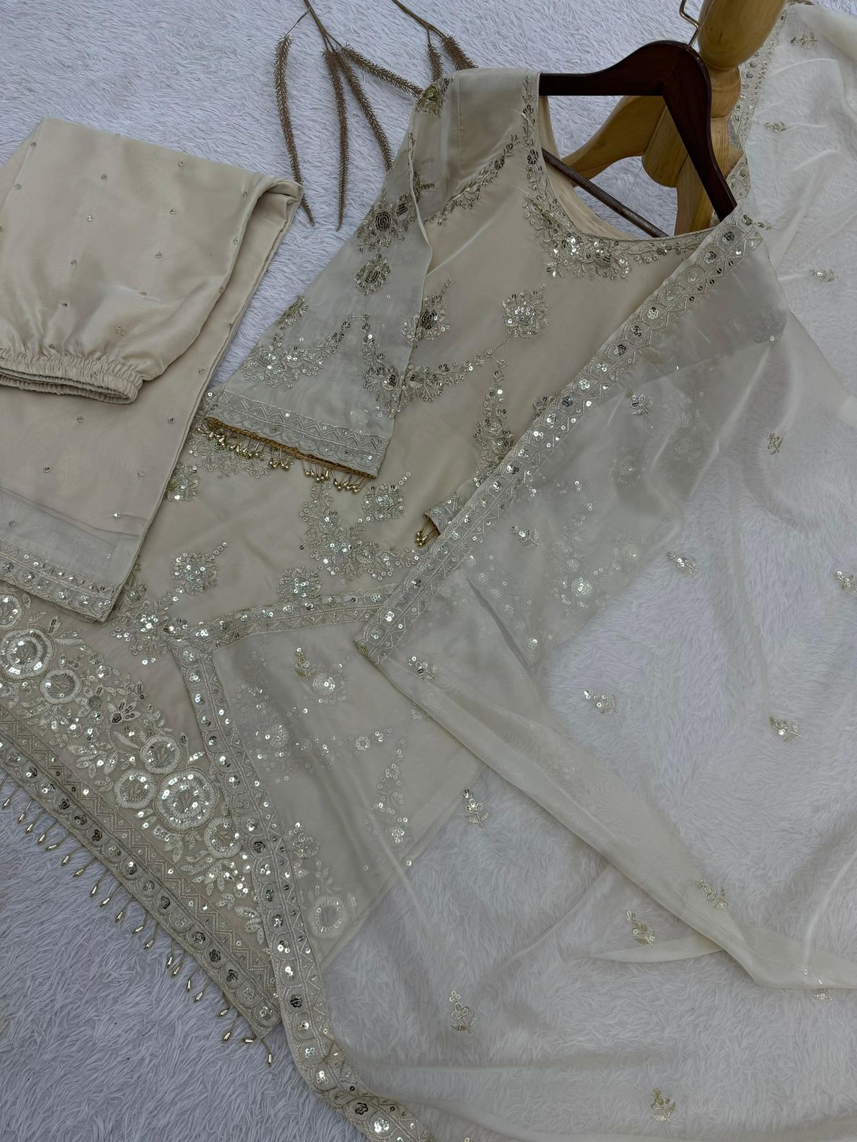 🫶🏻*PRESENTING 3 PIECE STYLISH KURTI, PLAZZO AND DUPATTA WITH BEAUTIFUL EMBROIDERY SEQUENCE WORK*