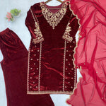 ___✨2025 VELVET FOR THIS WINTER SEASON OUR EXCLUSIVE 3 PIECE PLAZZO PAIR WITH EMBROIDERY WORK✨___