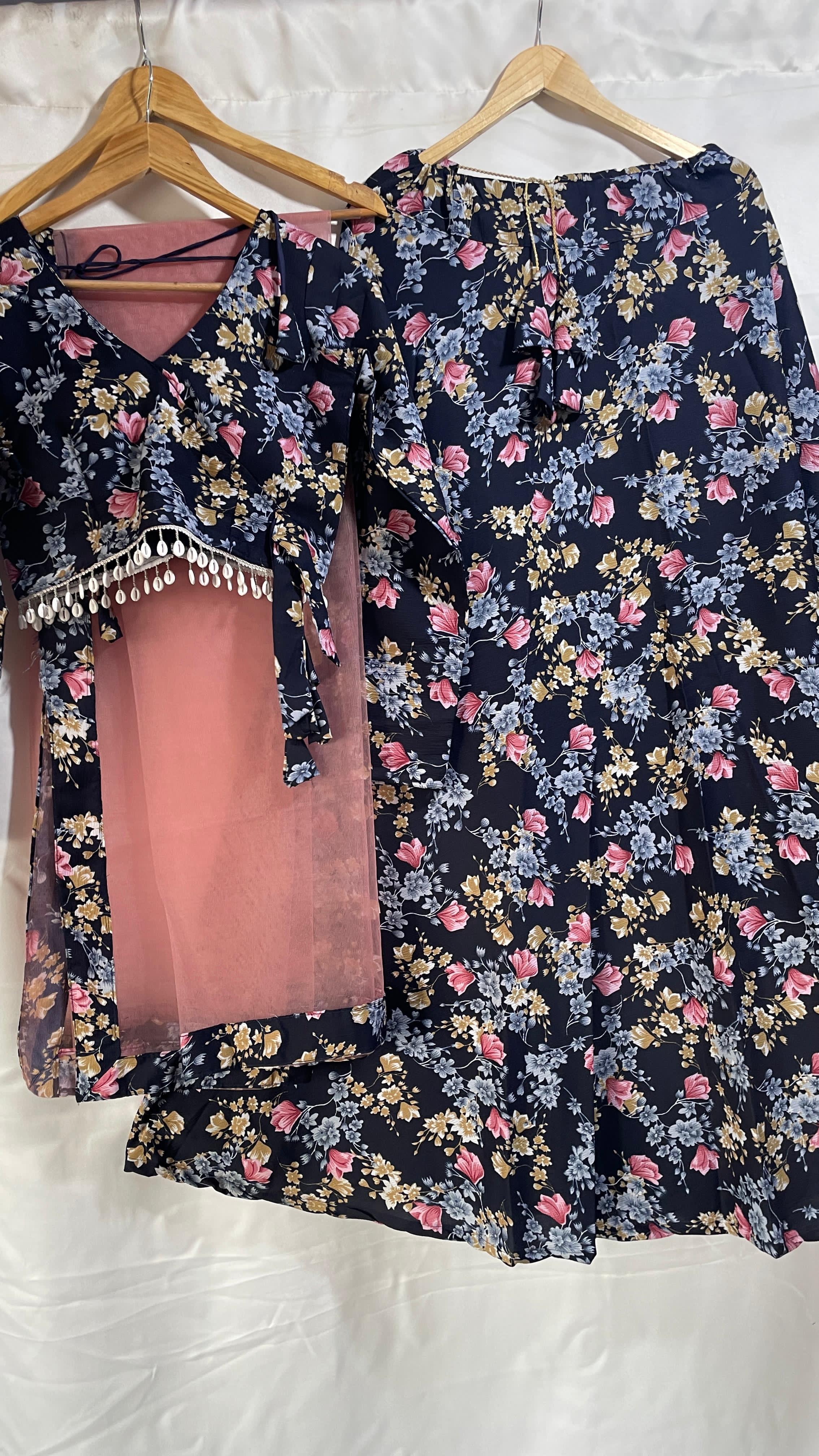 LEHENGA -floral print (stitched free size 44")
