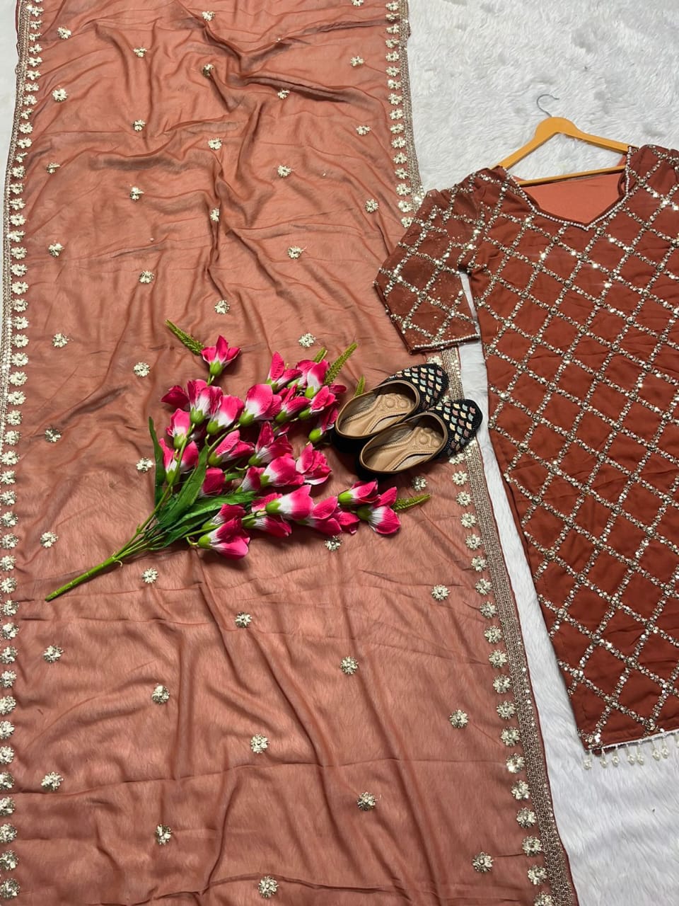 Fox Georgette With Sequence Embroidered And Real hand work Dupatta (2.3mtr)