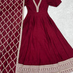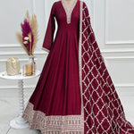 *PRESENTING NEW HIGH END PREMIUM QUALITY PURE BLOOMING VICHITRA SILK FABRIC FULLY FLARE GOWN,WITH DUPPTA SET*