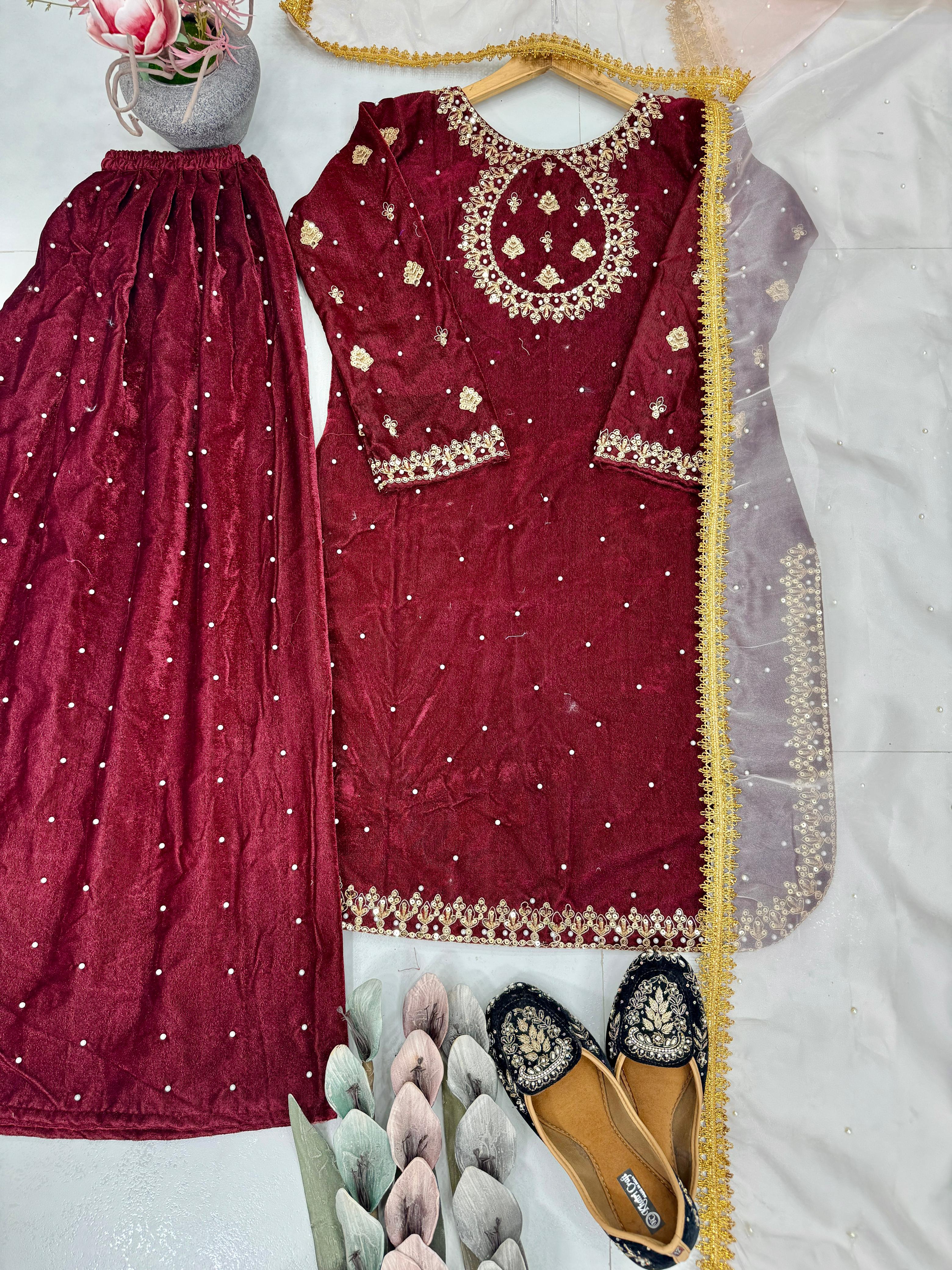 *NEW DESIGNER PARTY WEAR HEAVY VISCOSE VELVET TOP WITH SHARARA*