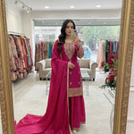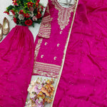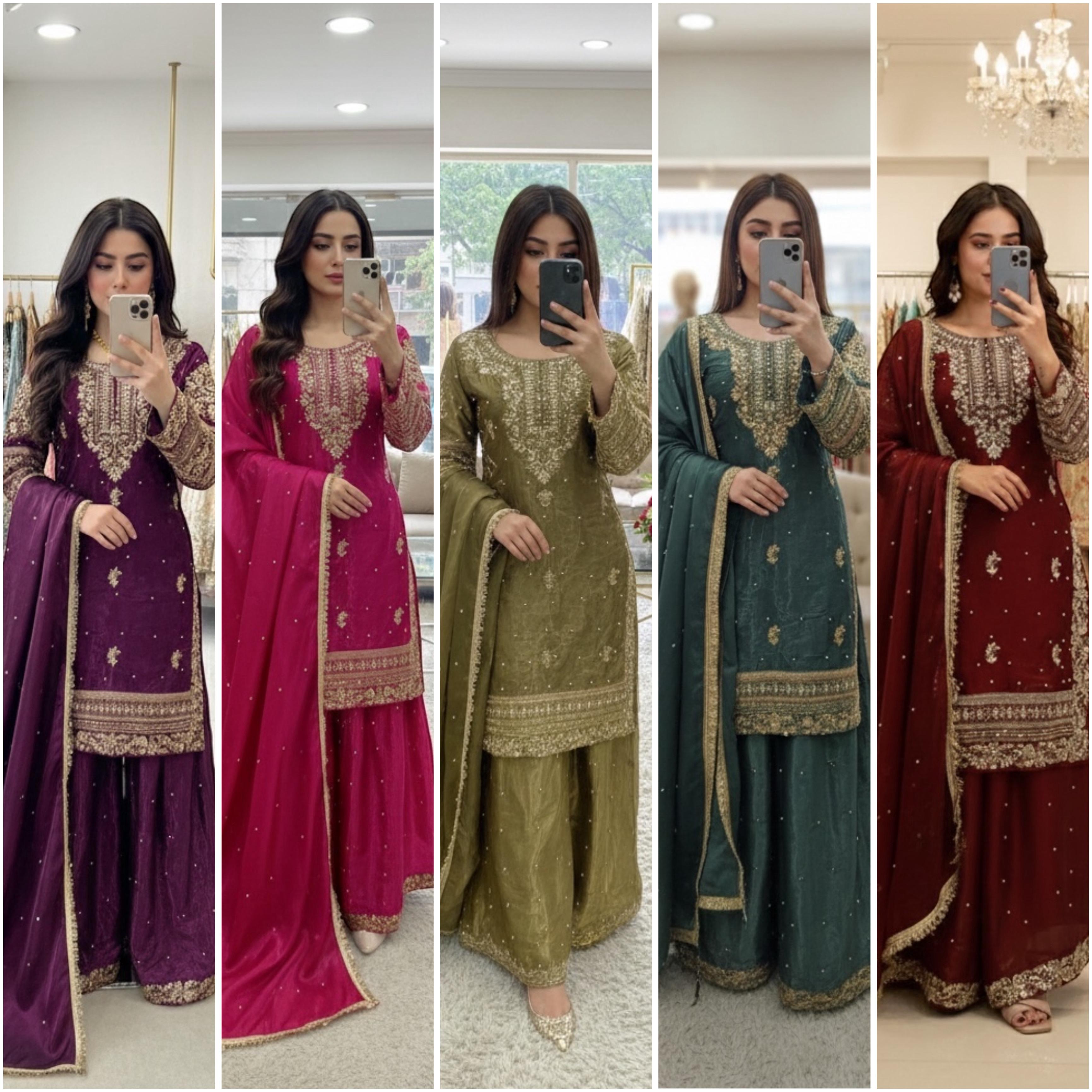 *Top Fabric* :Pur Gmy Silk With Heavy Embroidery 3 mm Sequence Work With Rivet Moti Work With Sleeves