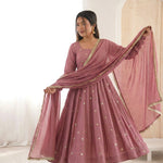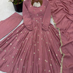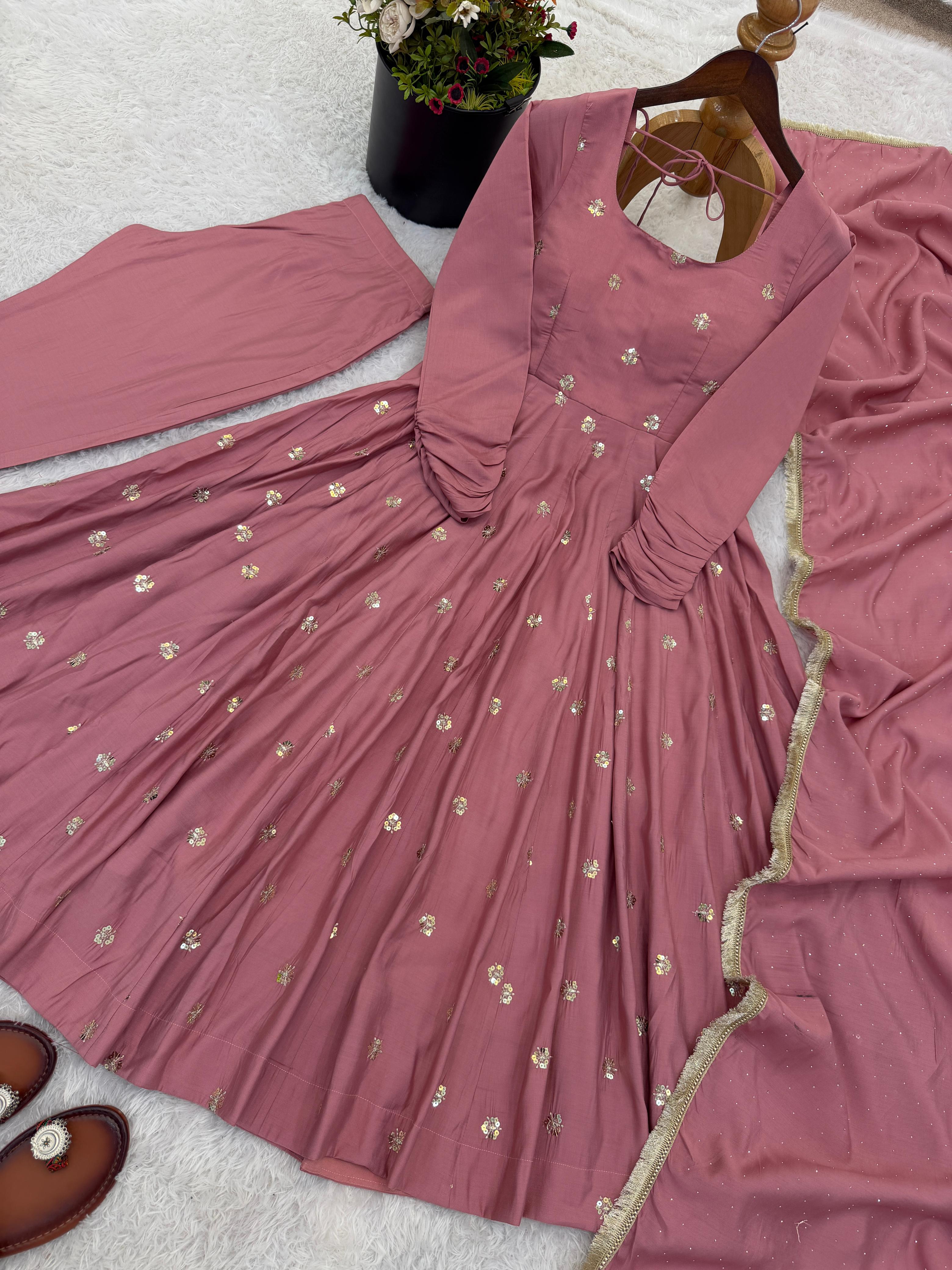 *Presenting New Designer Collection In Roman Silk With Embroidery Work Gown And Dupatta Set Fully Stitched Ready To Wear 🔥😍🥰*