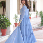 💗 *Faux Georgette gown with With Sequins Zari Embroidered Cut Work Dupatta, it will enhance can combine the best parts of western and Indian wear into one stunning ensemble.* 💝