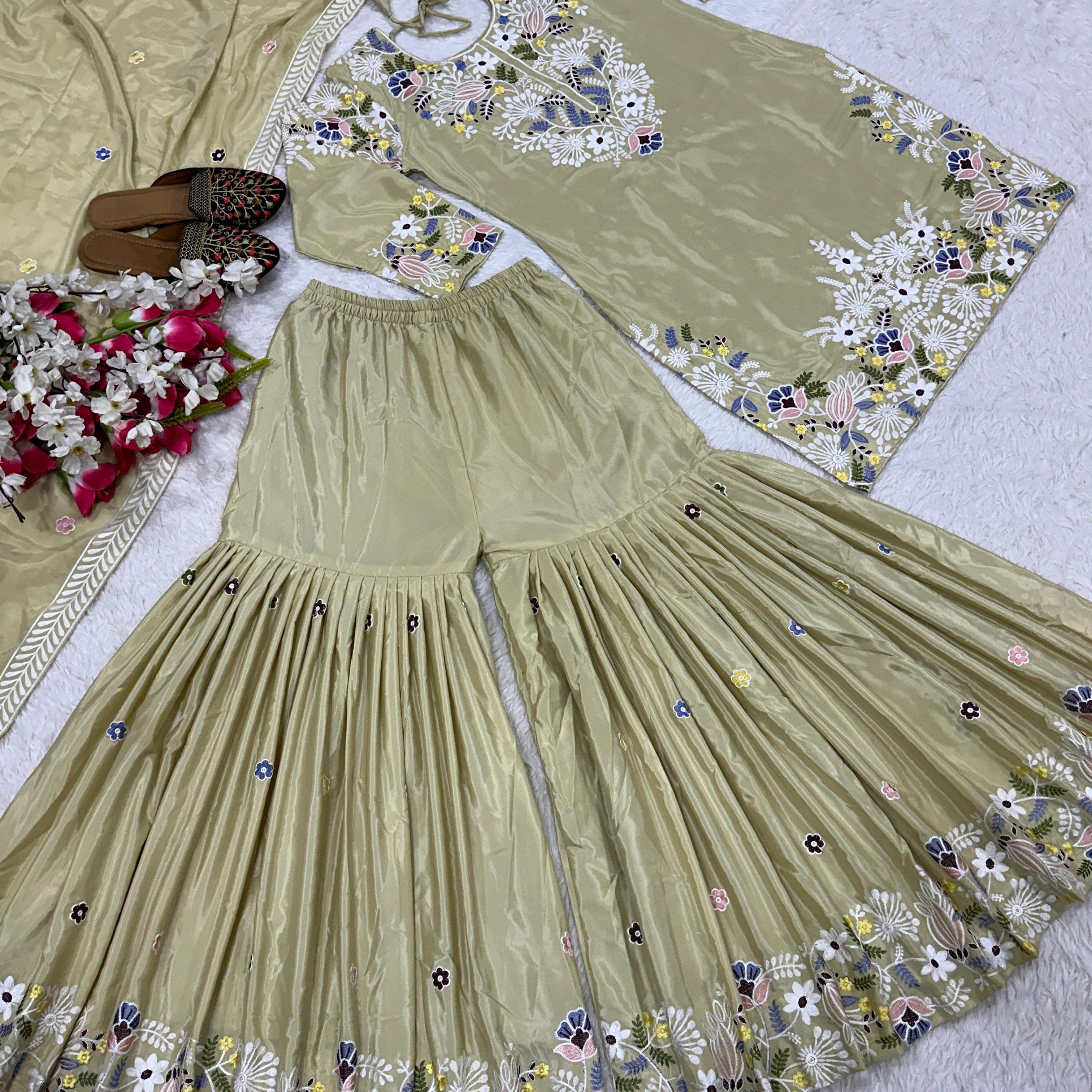 Creamy Premium Embroidered Suit