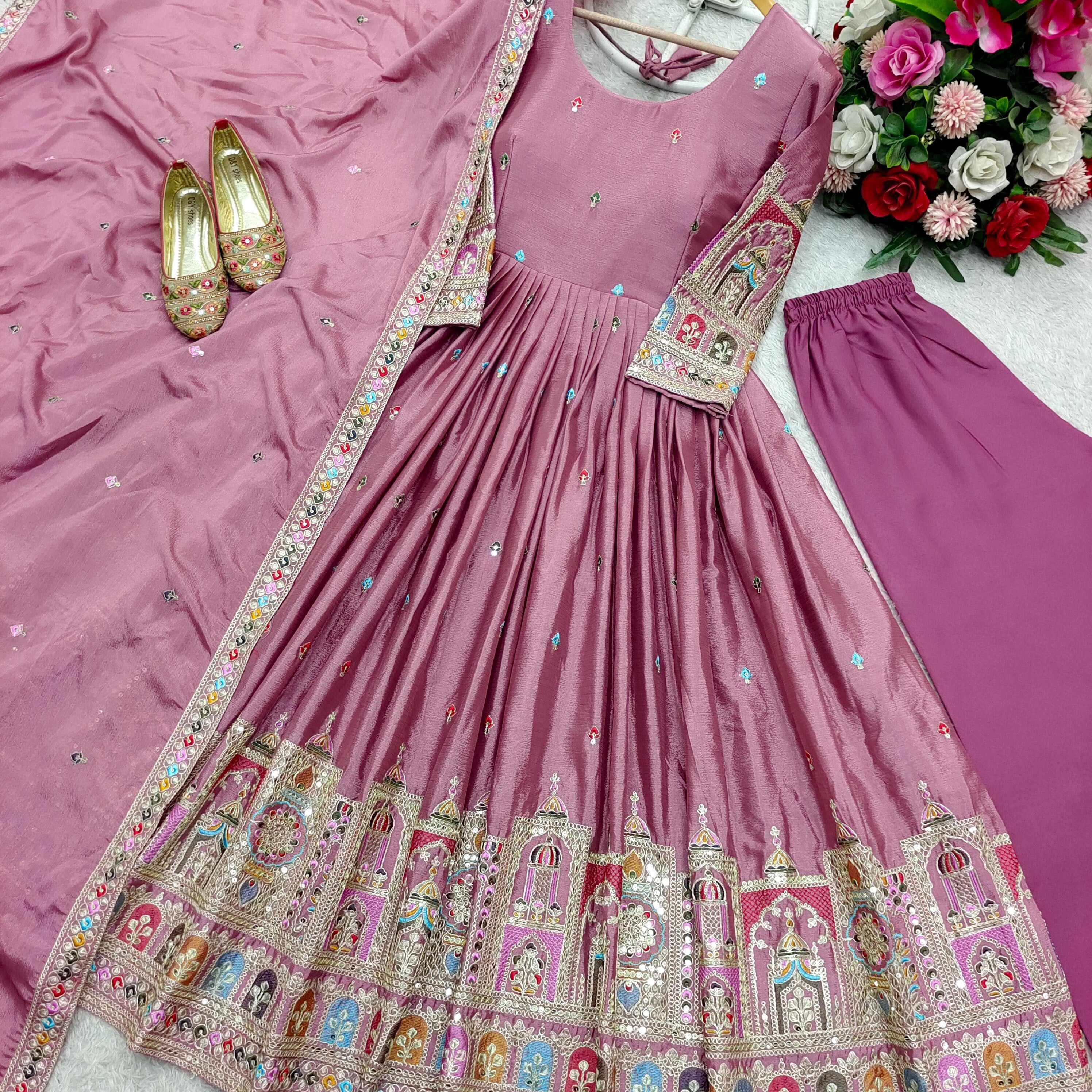Cremy Chinon Silk Anarkali Gown