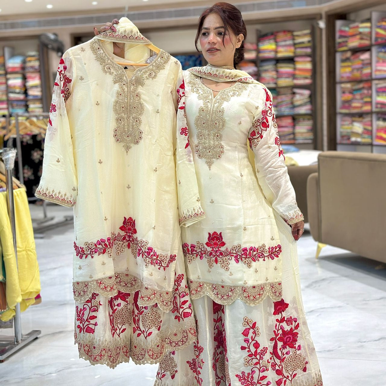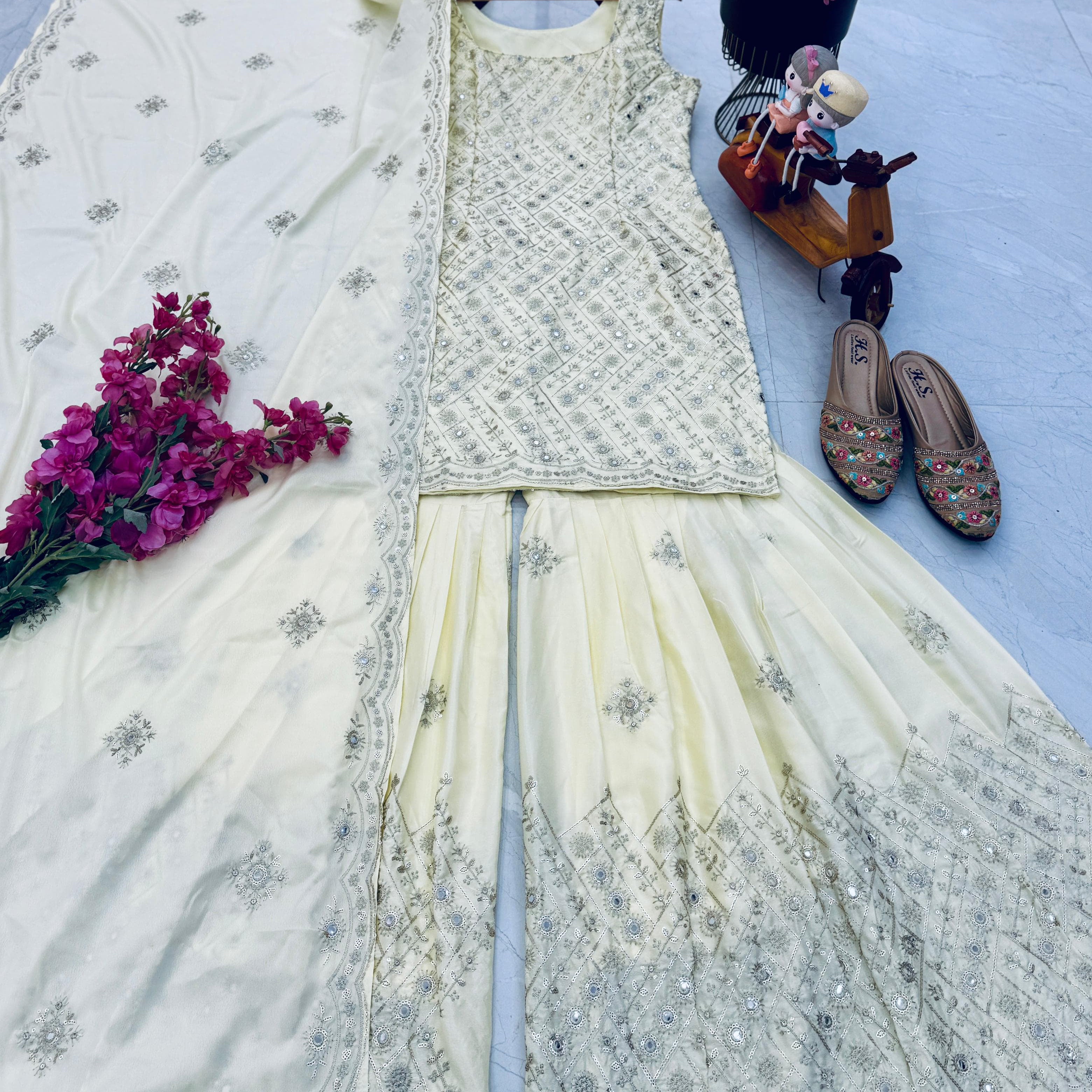 Creamy Partywear SIlk Suit
