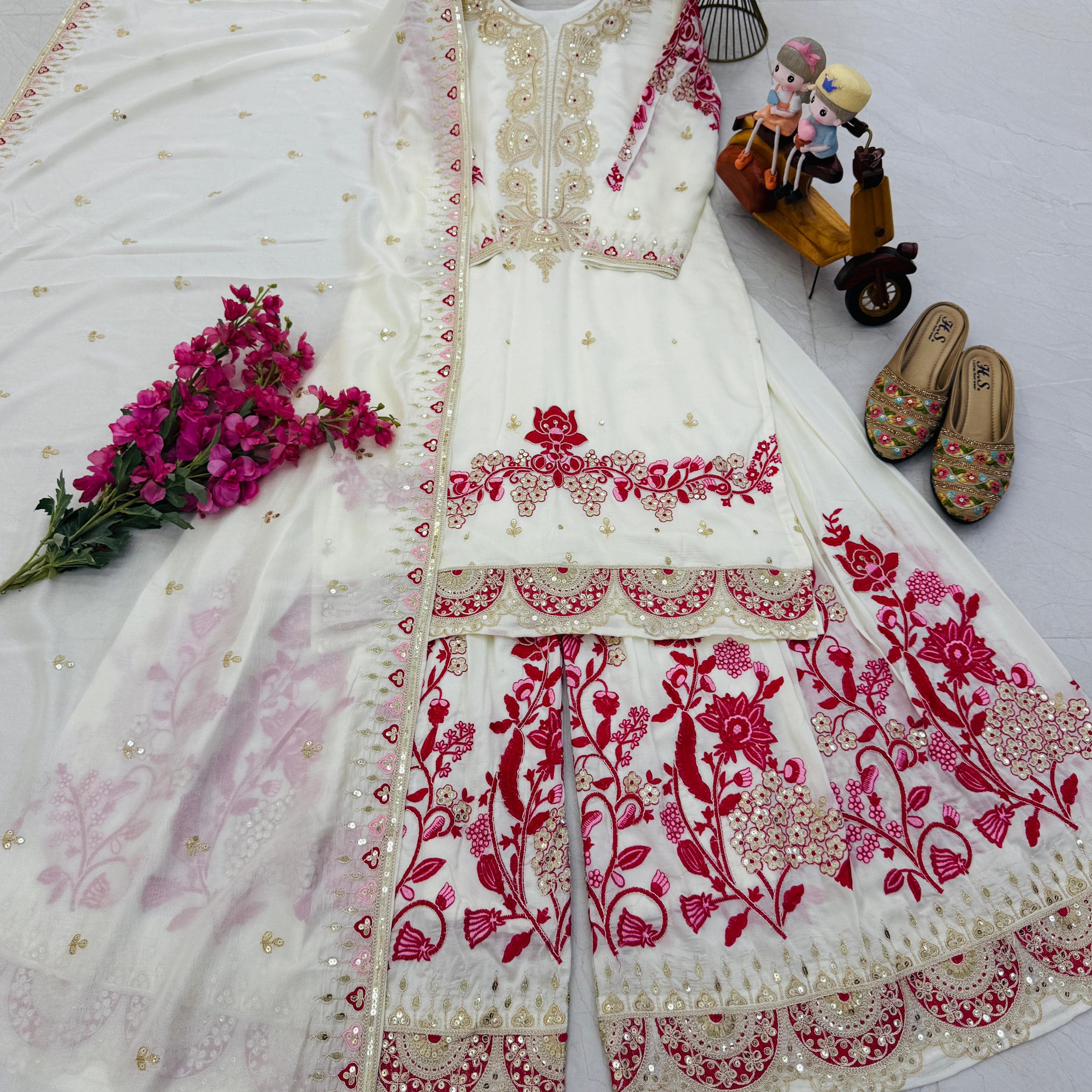 Creamy Embroidered Silk Suit