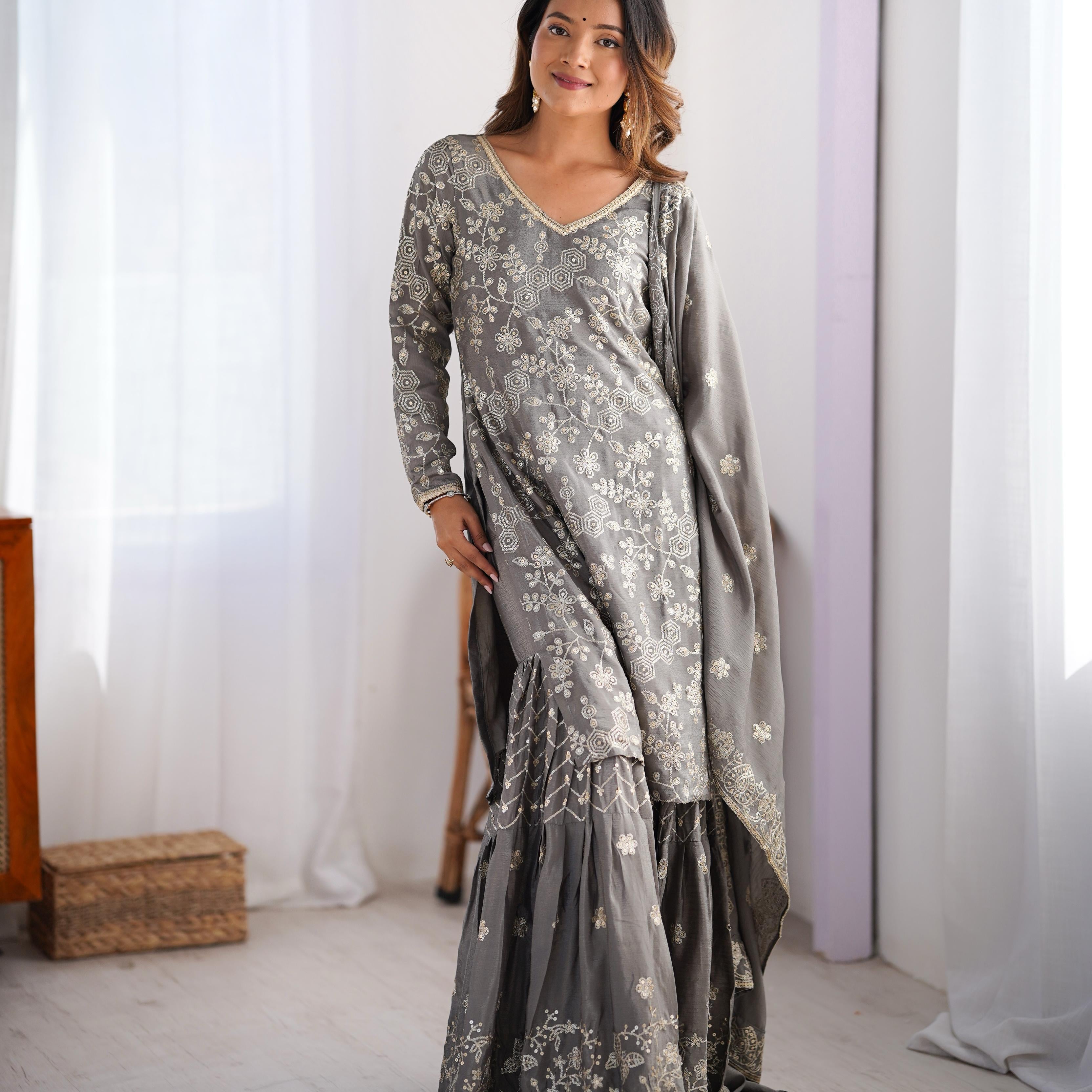 Dashing Chinon Silk Top Sharara