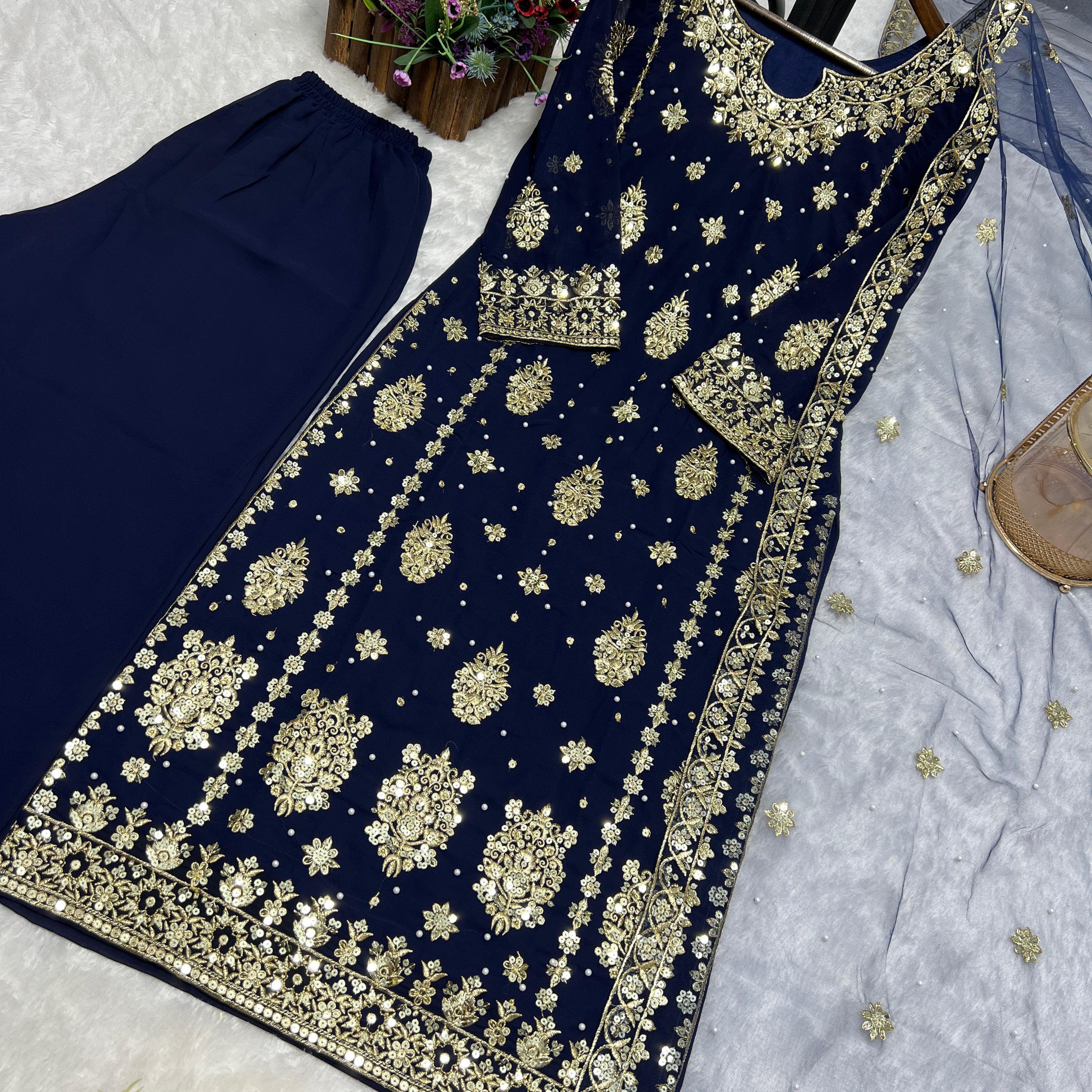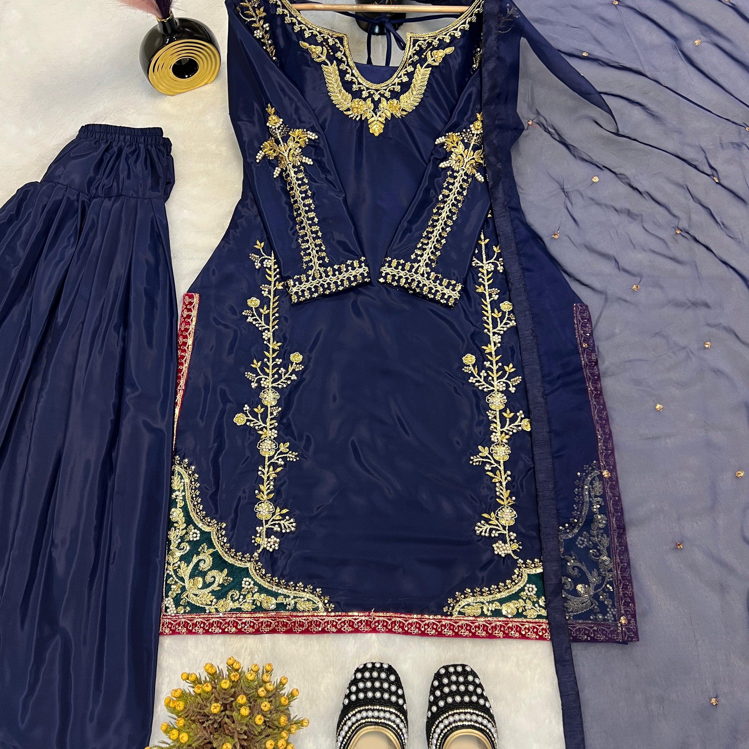 Dark Blue Pakistani Straight Suit