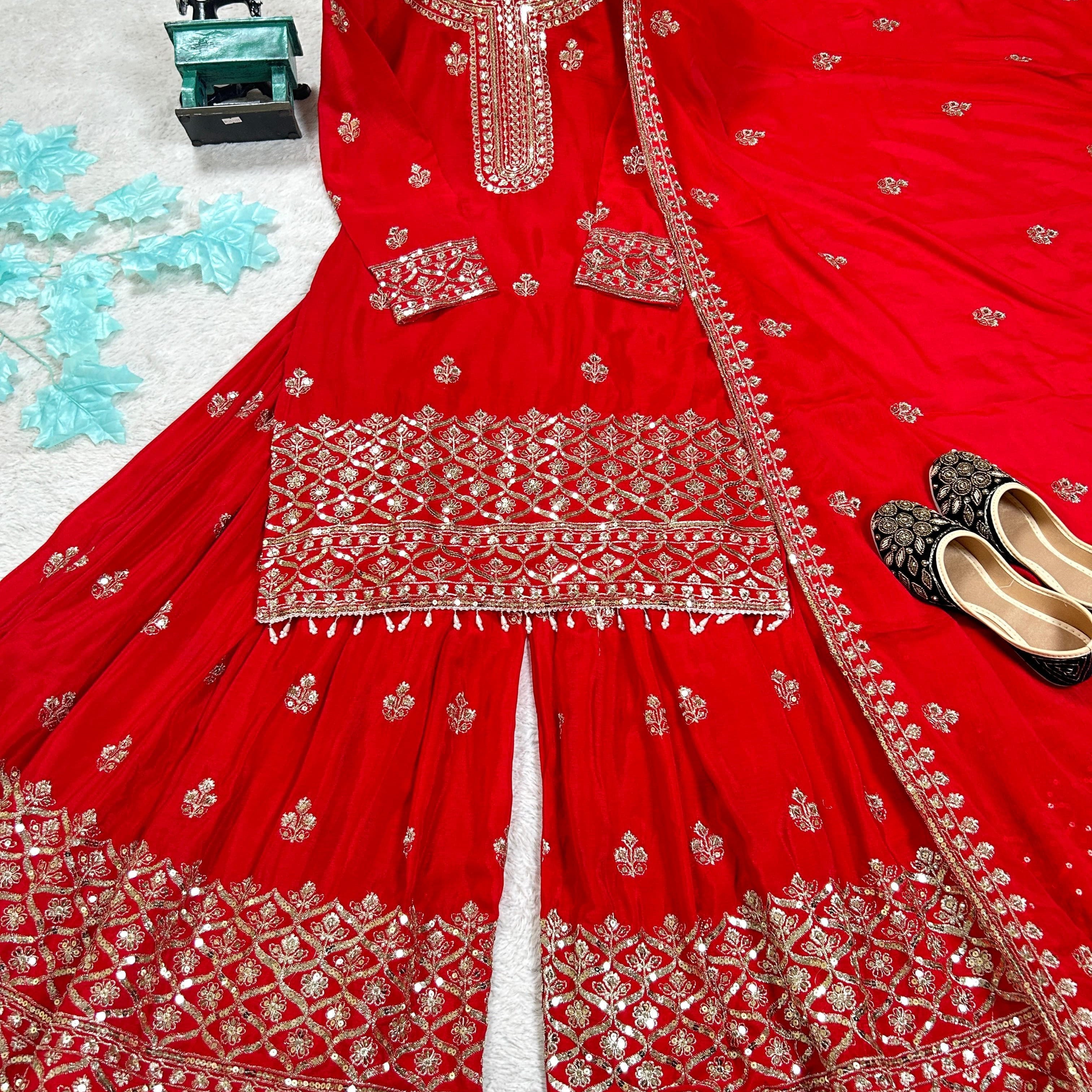 Dazzling Red Top Sharara Collection