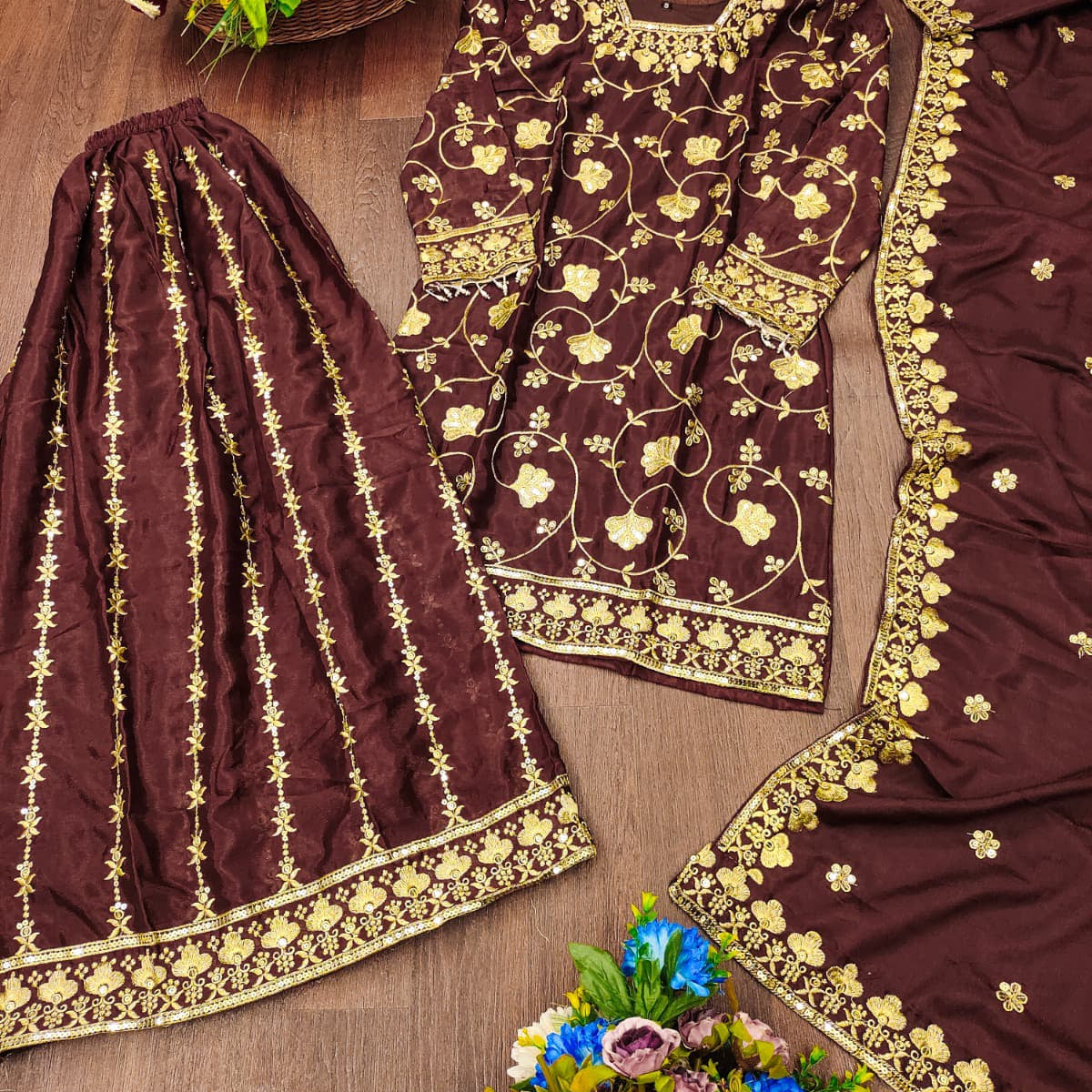 Designer Brown Silk Top Lehenga
