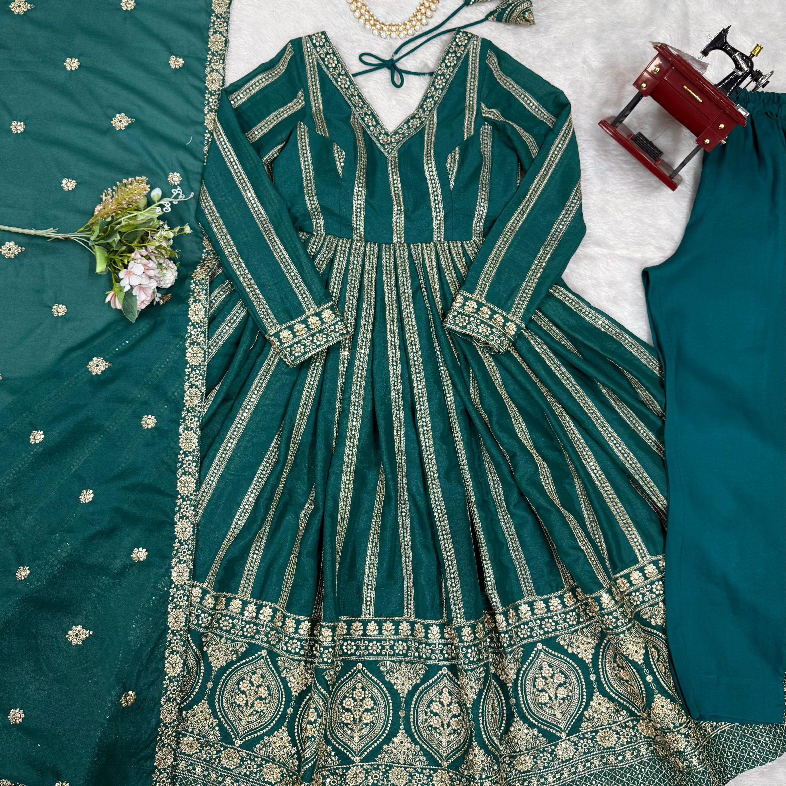 Designer Embroidered Chinon Suit