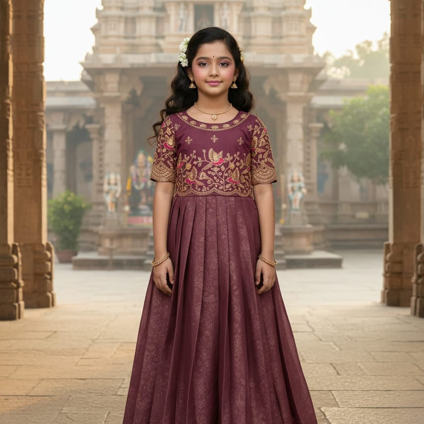 Designer Kids Silk Anarkali Gown