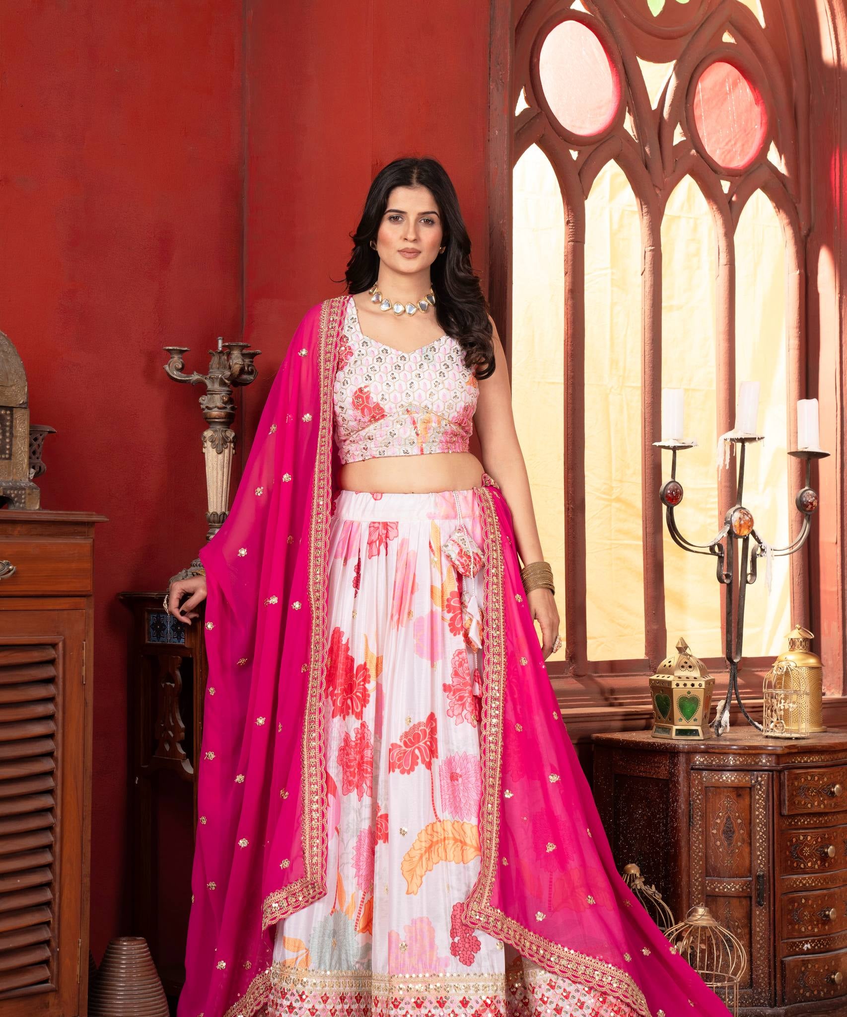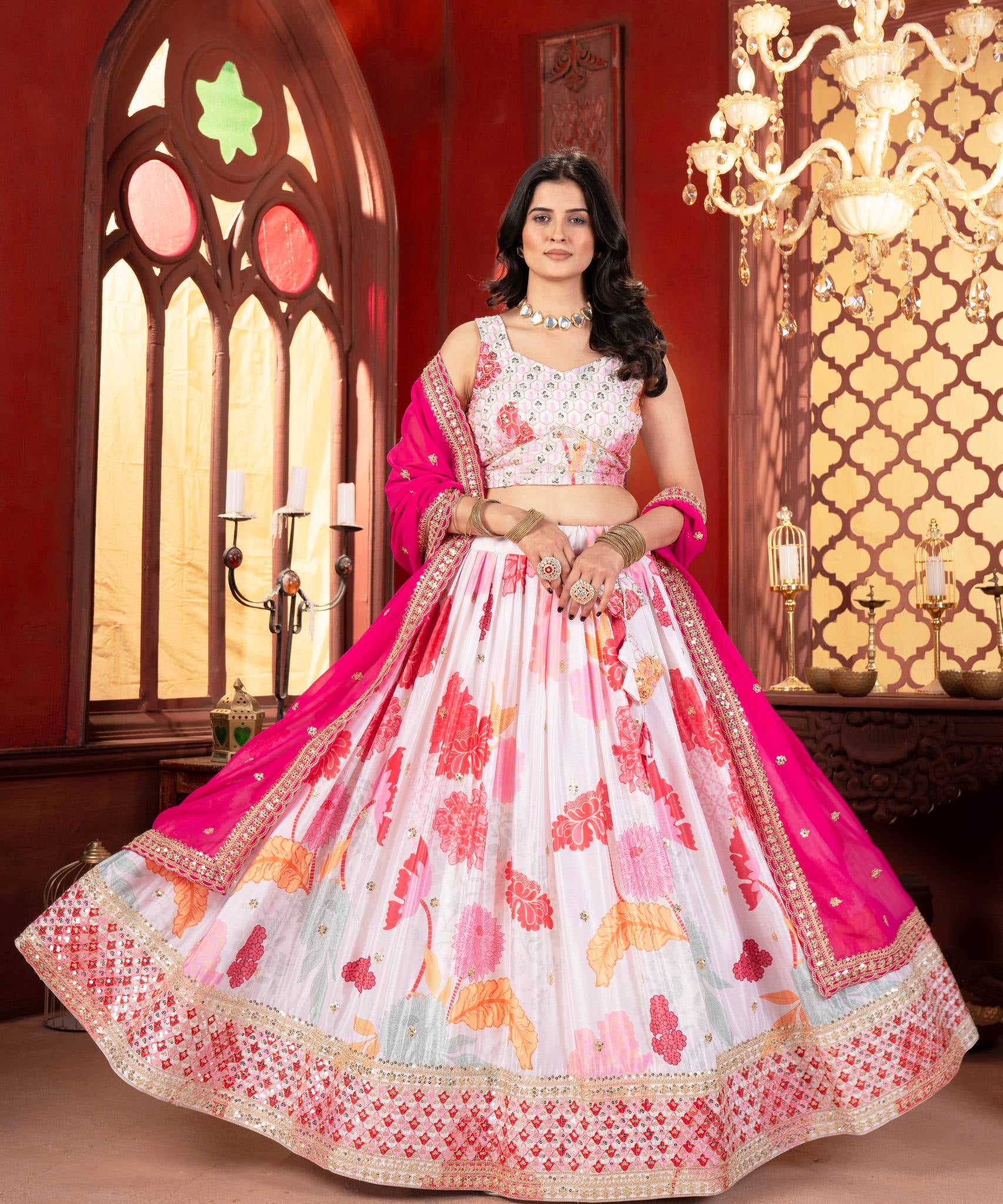 DESIGNER PLUS SIZE WHITE FLORAL LENGA CHOLI