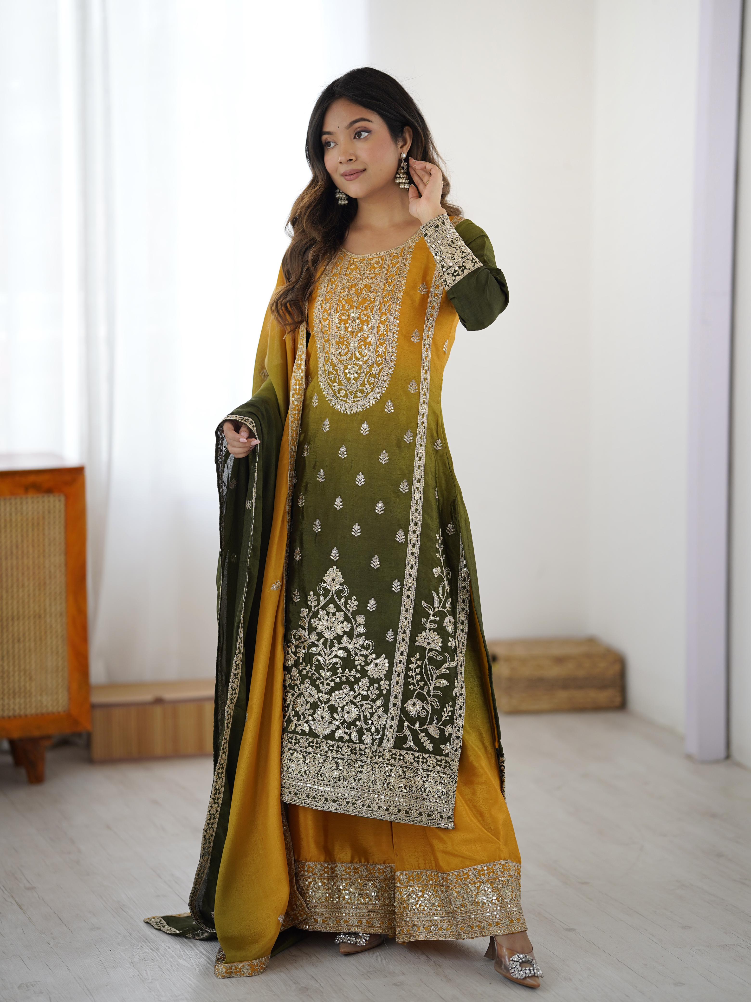 Premium Shaded Chinon Silk Suit