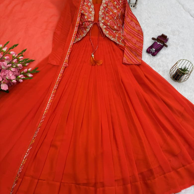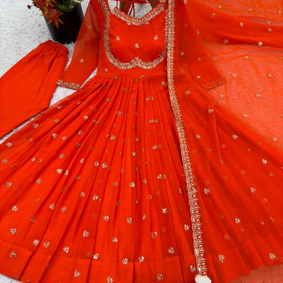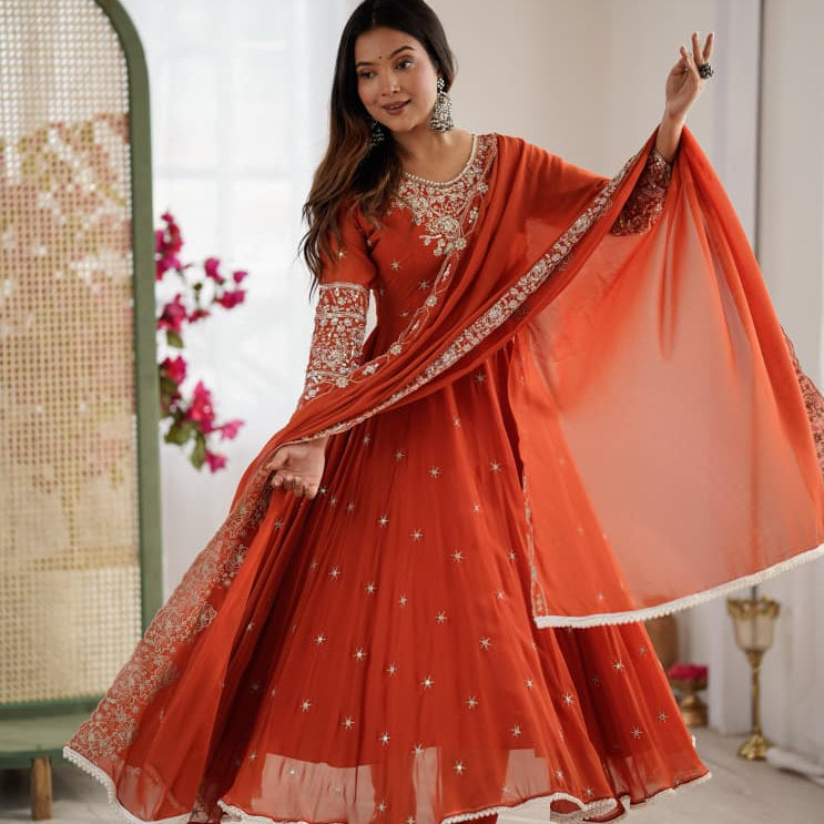 Orange Silk Anarkali Gown Collection