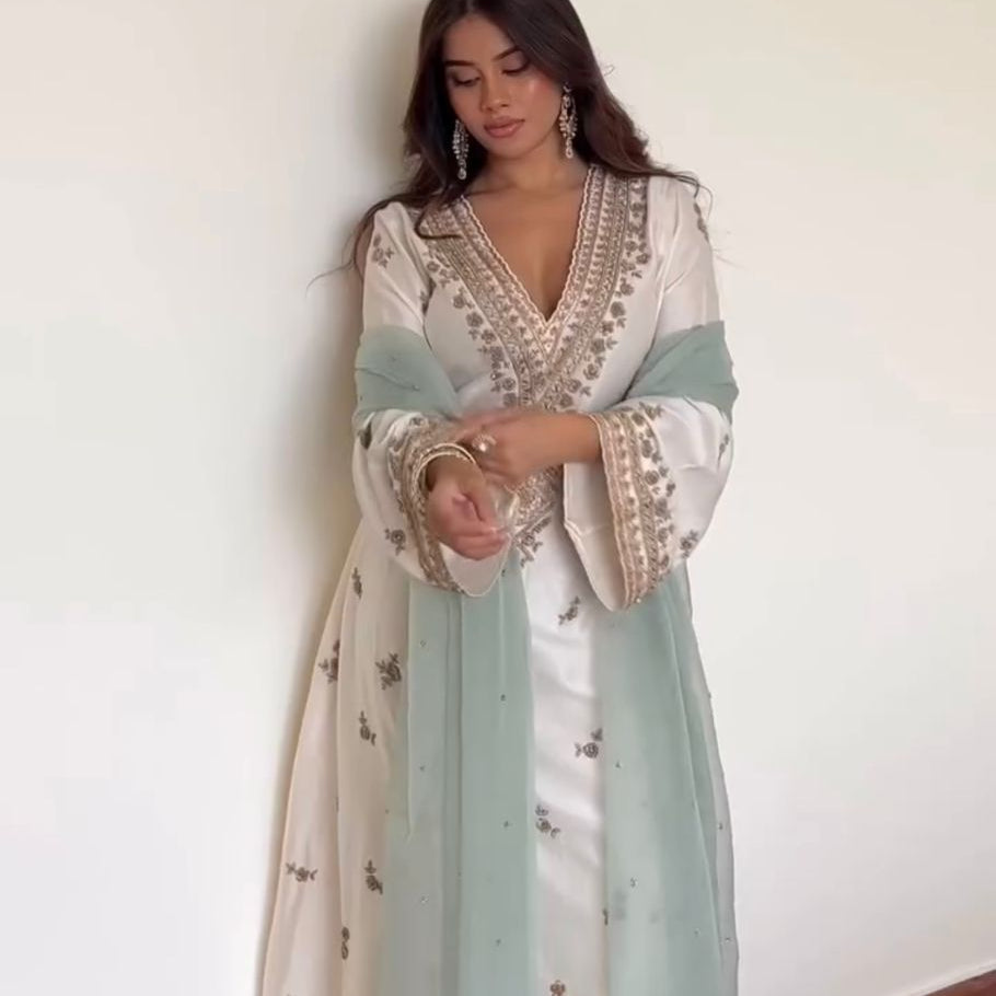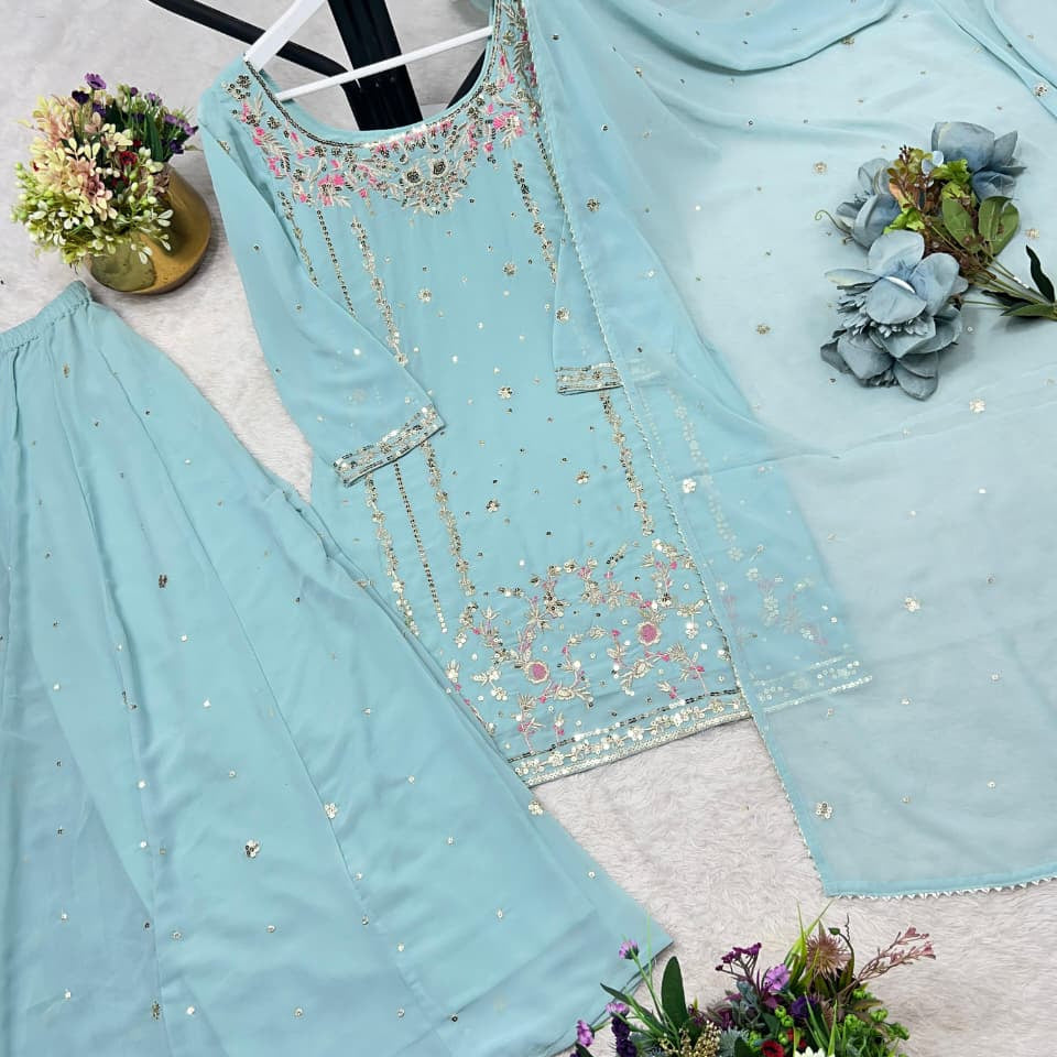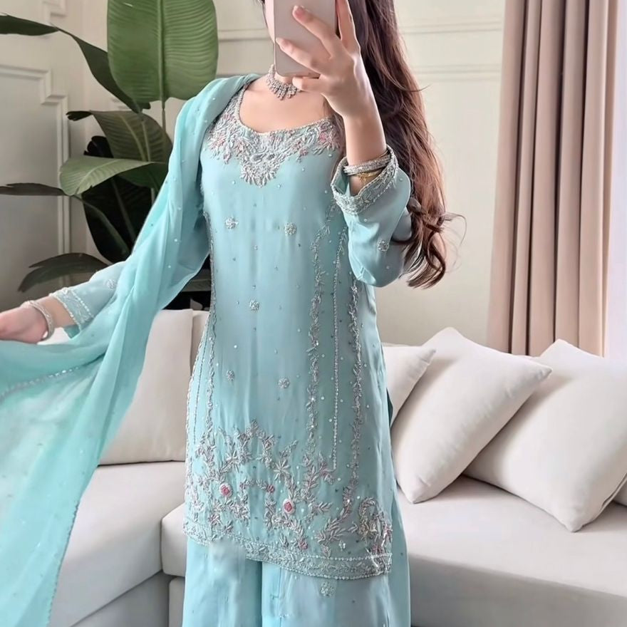 Aqua Blue Silk Embroidered Suit