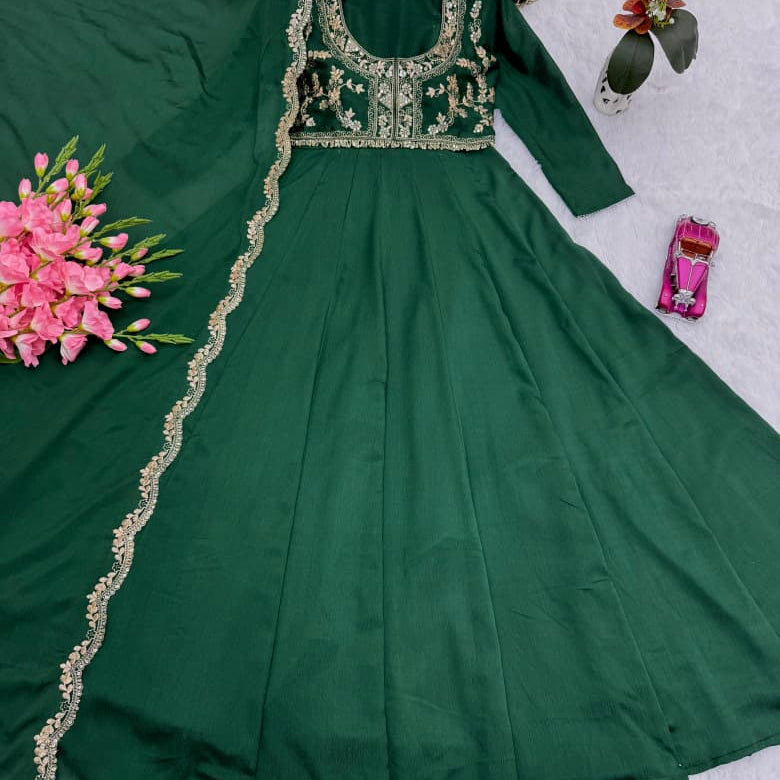 Green Designer Silk Anrakali Gown