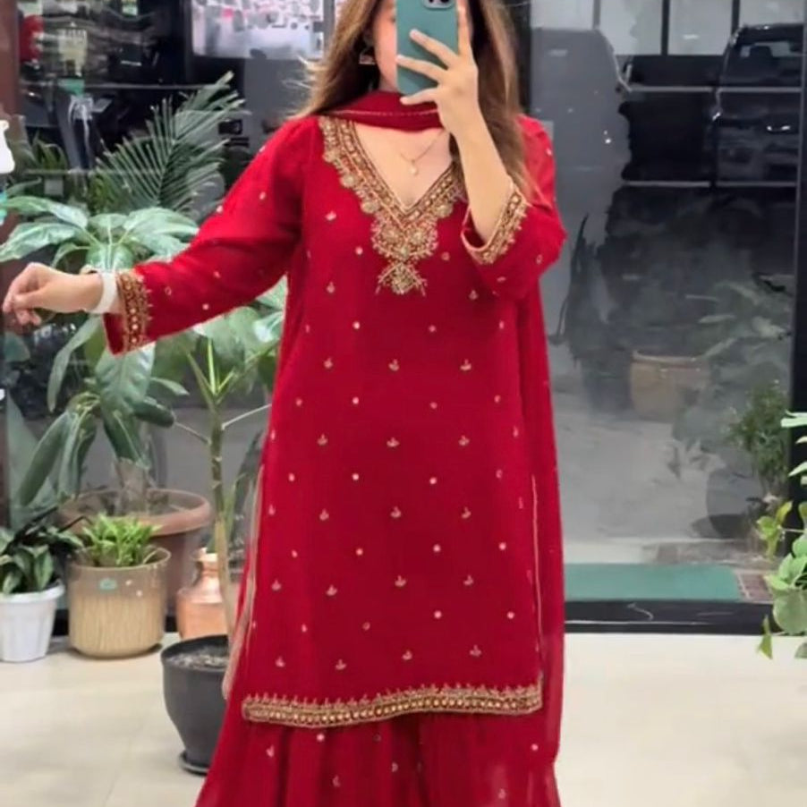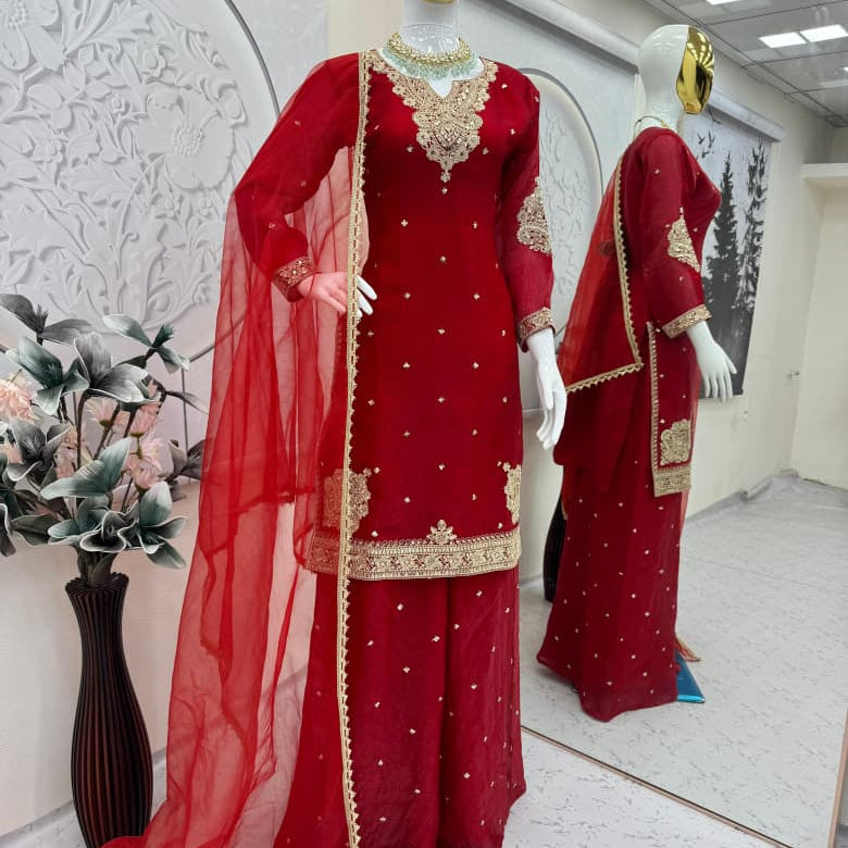 Seerat Stylish Chinon Plazzo Suit
