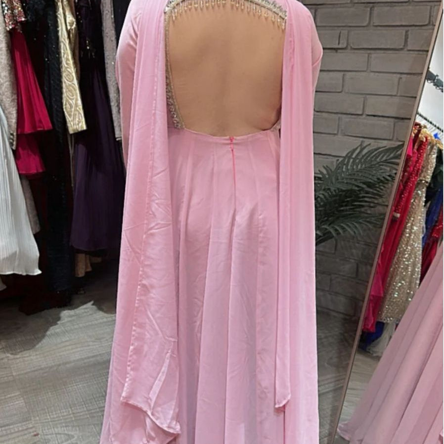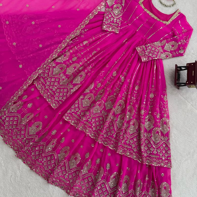 Crafted Pink Georgette Top Lehenga
