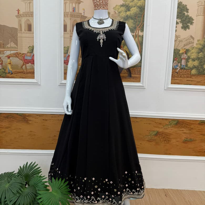 Black Designer Embroidered Gown