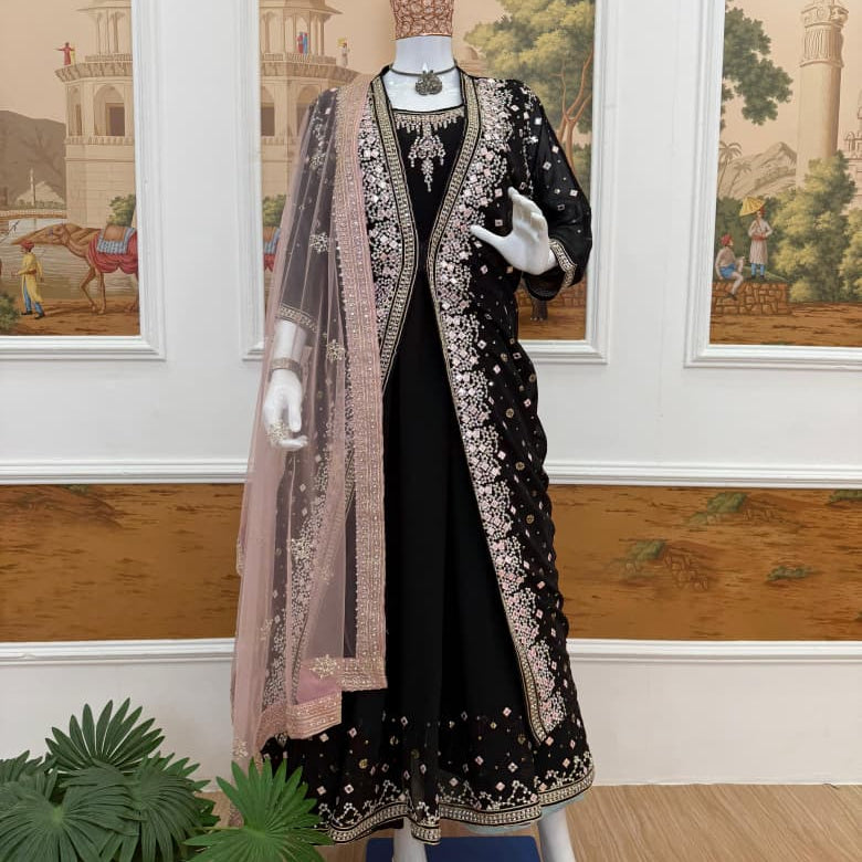 Trending Festive Black Koti Suit