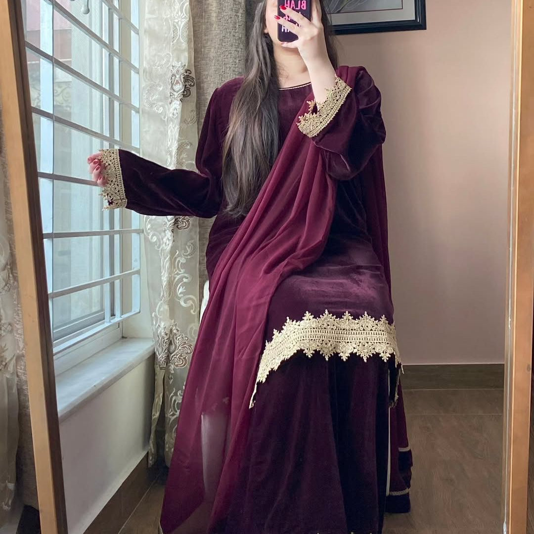 VELVET DESIGNER WEAR KURTA PLAZZO