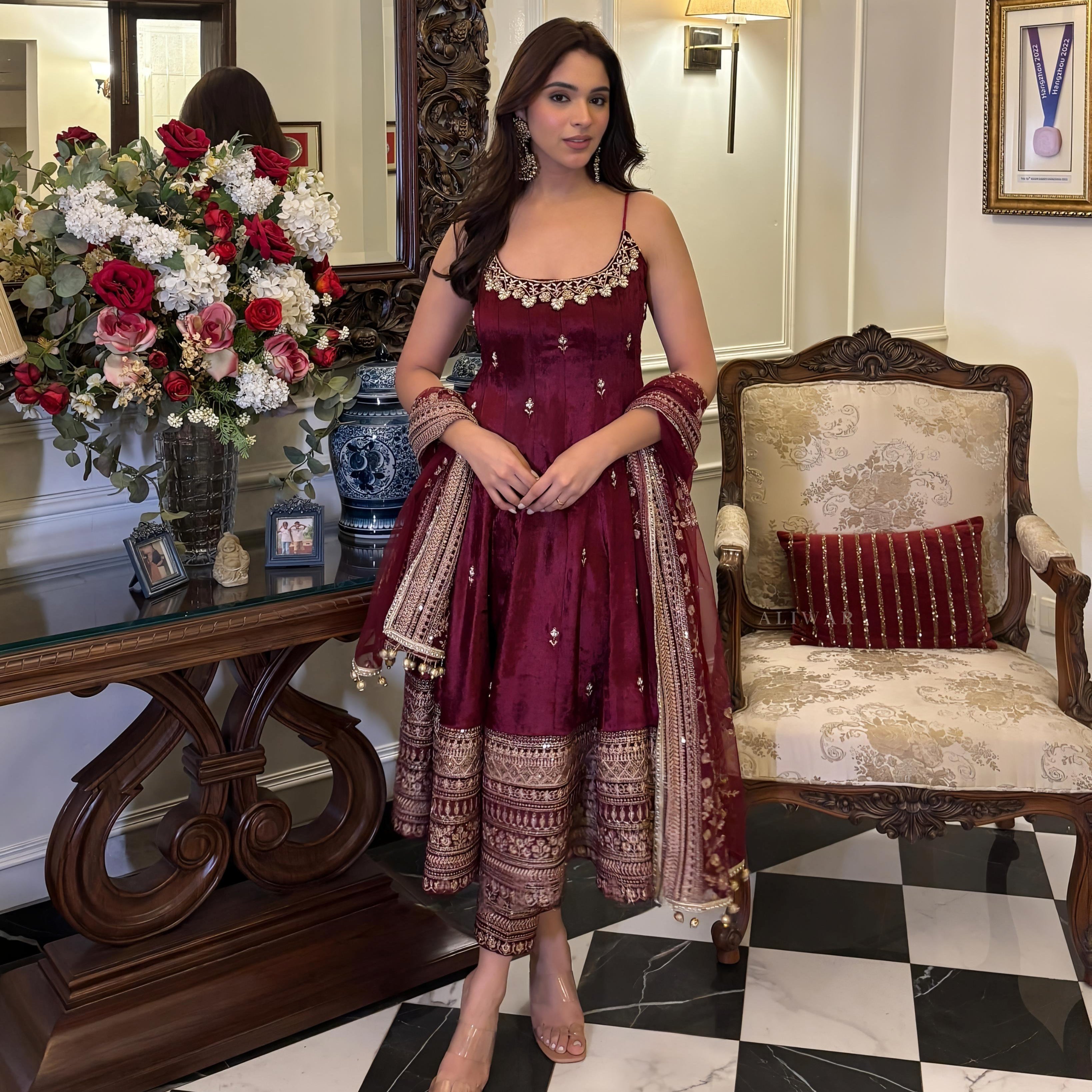 Pretty Designer Velvet Anarkali Gown