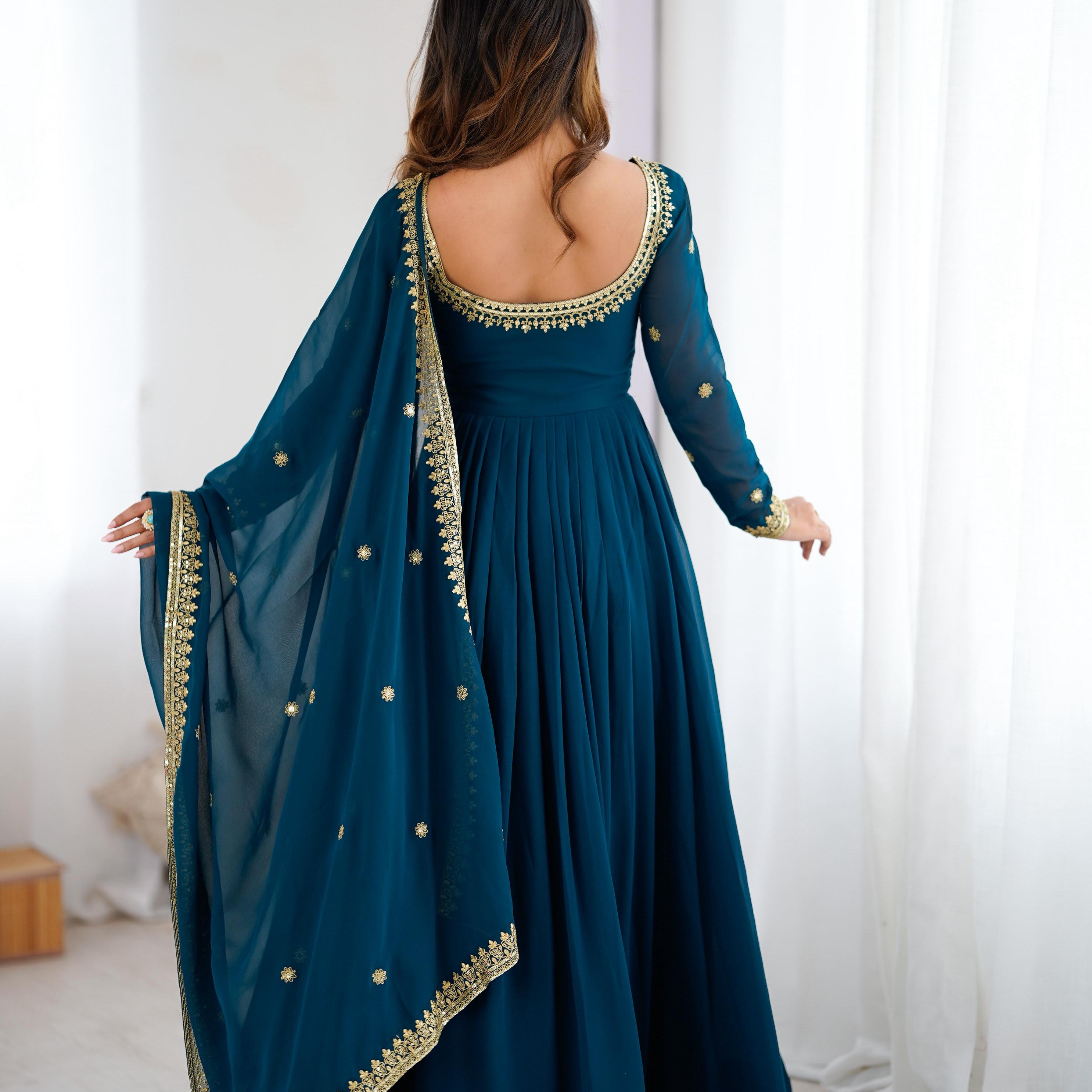Teal Blue Georgette Anarkali Gown