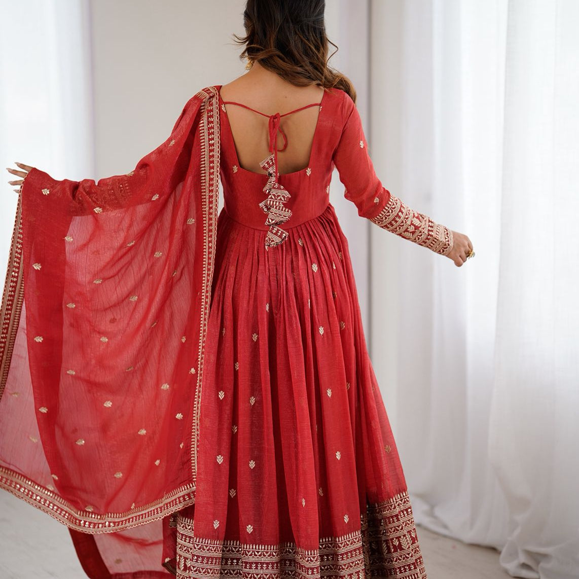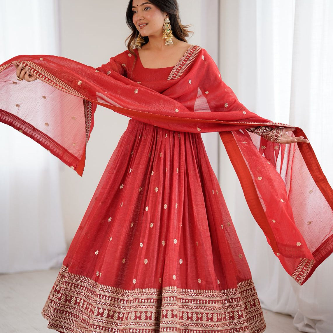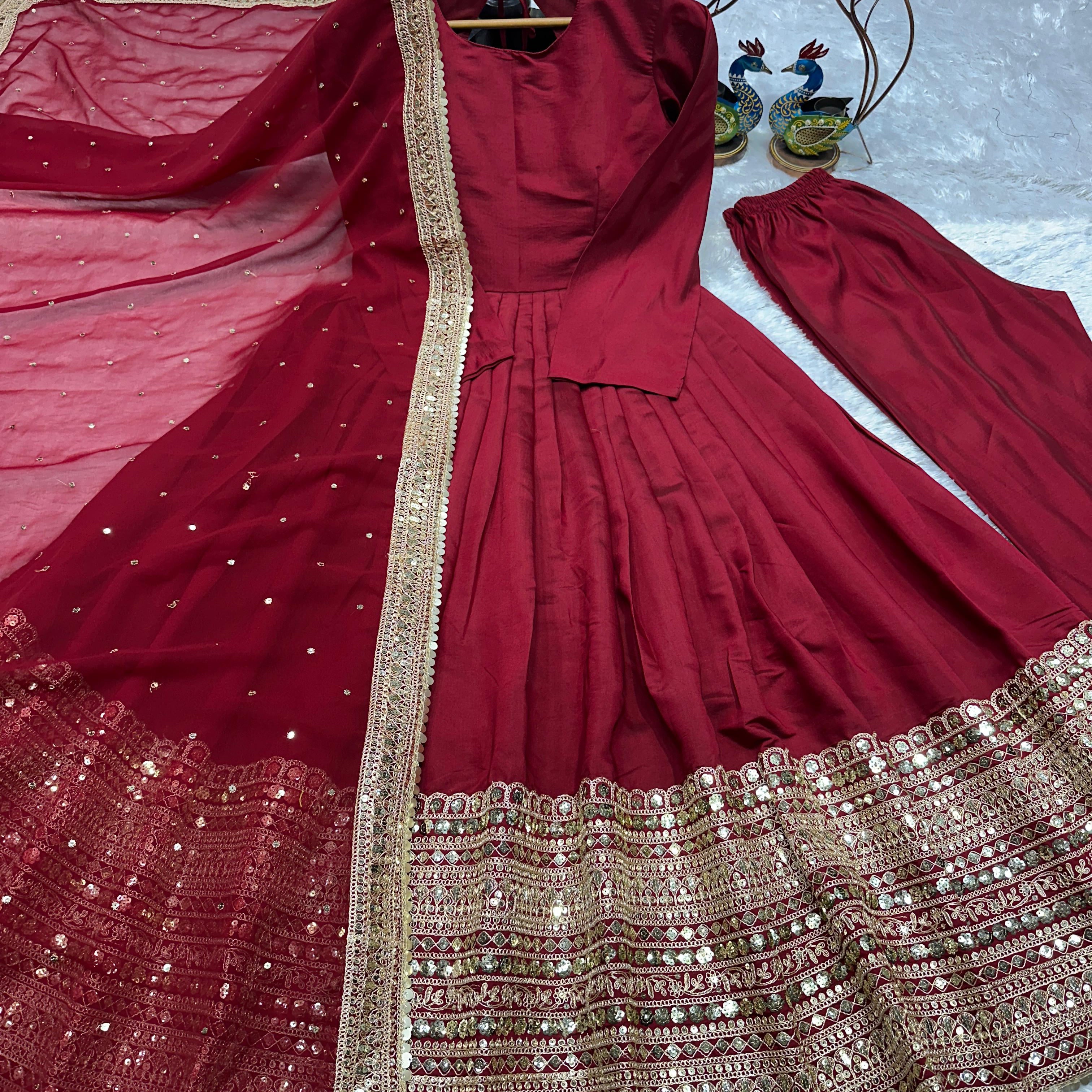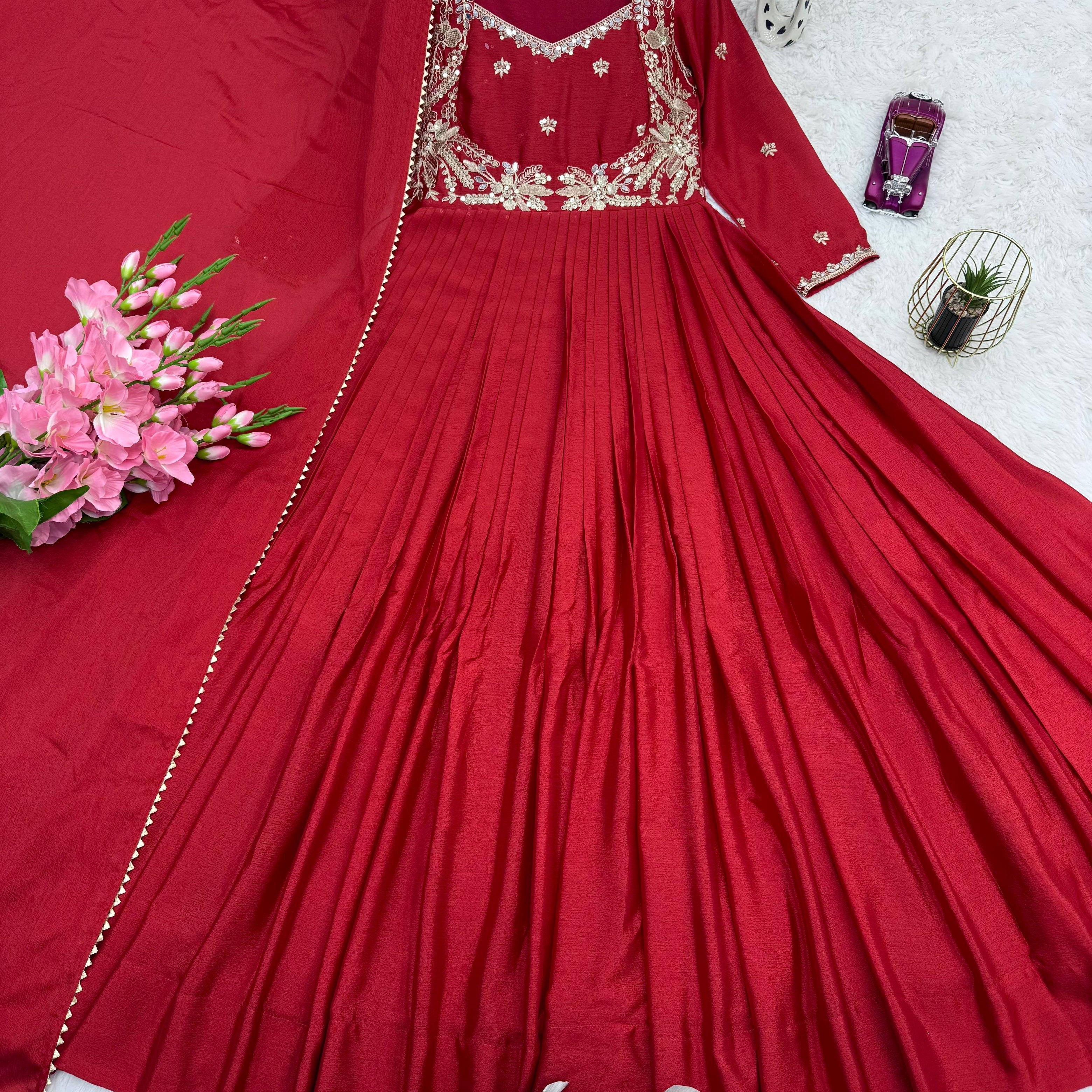 Reddish Chinon Anarkali Gown