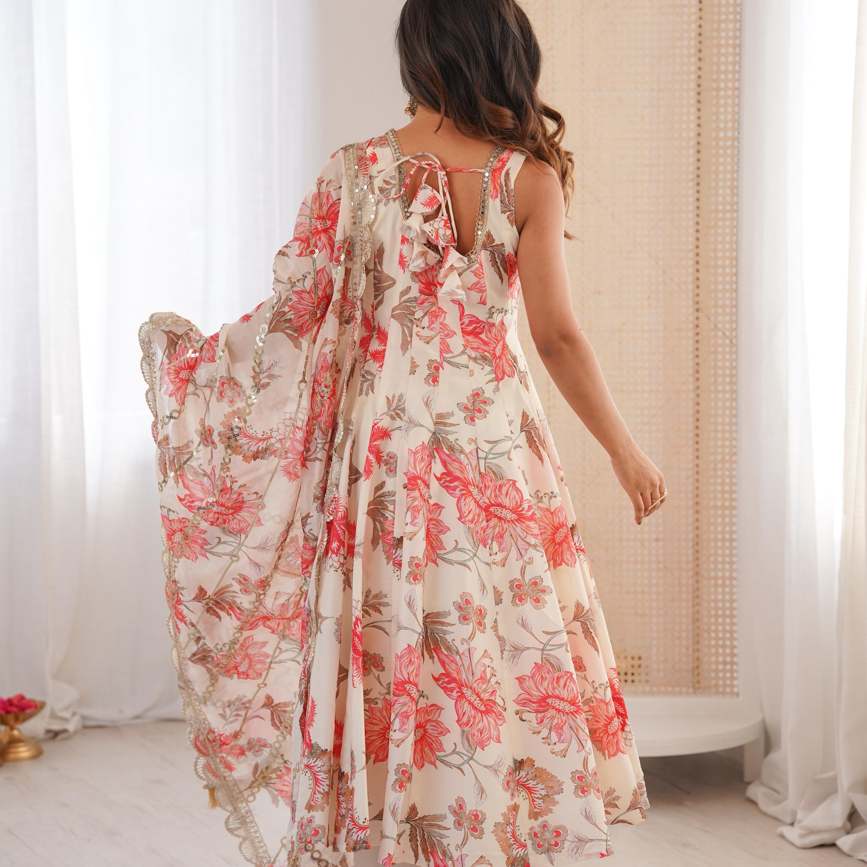Designer Roman Silk Anarkali Gown