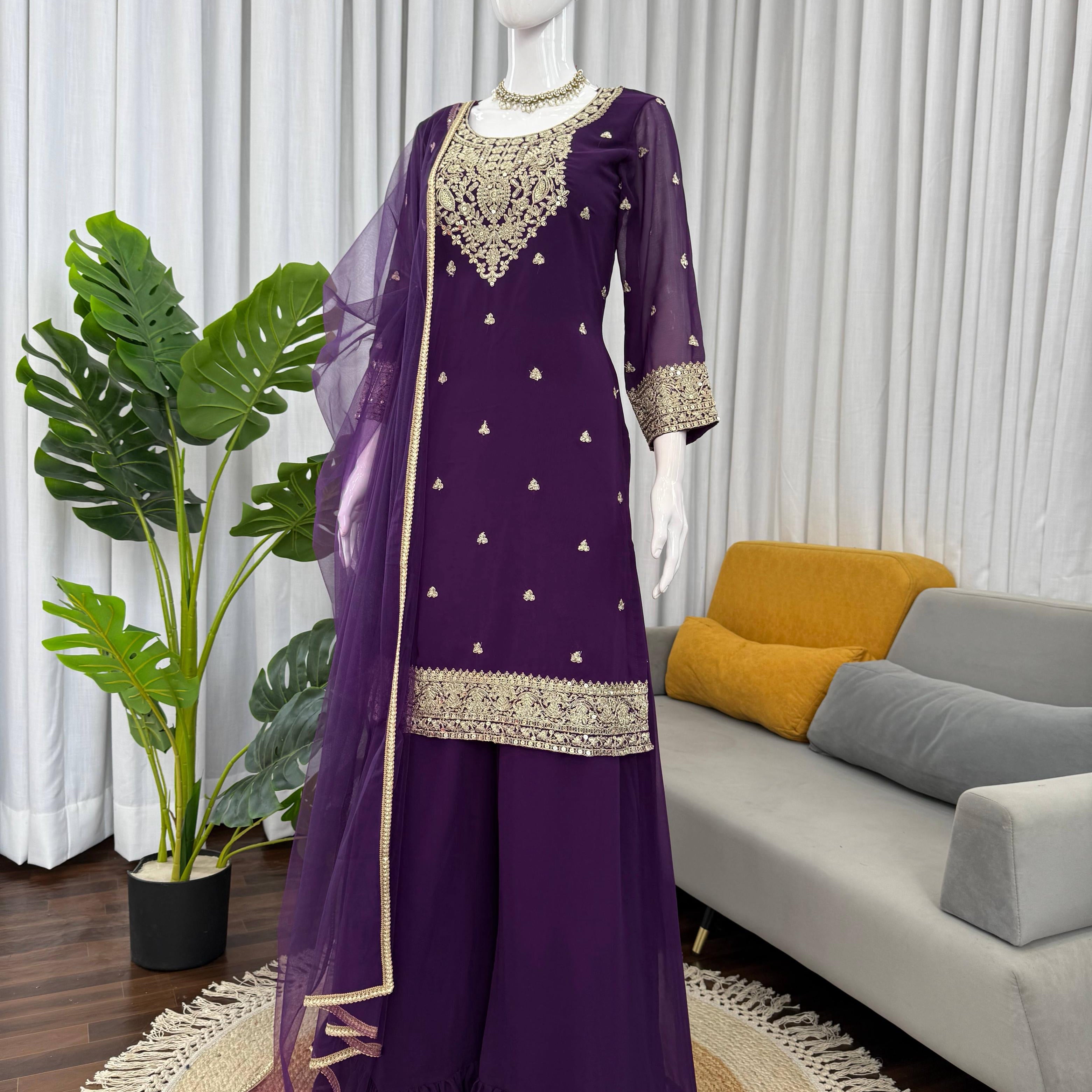 Royal Embroidered Top Plazzo Suit