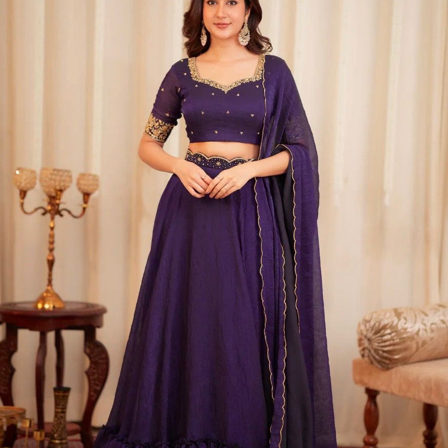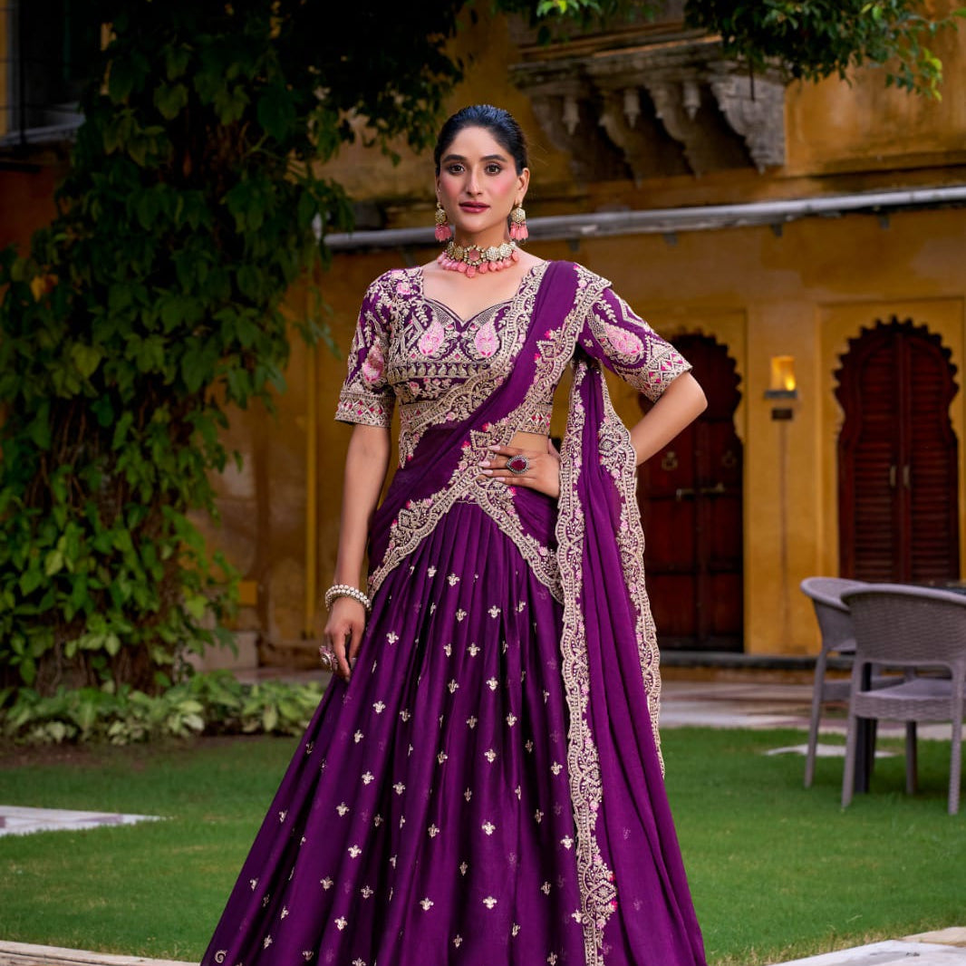Luxury Violet Embroidered Lehenga