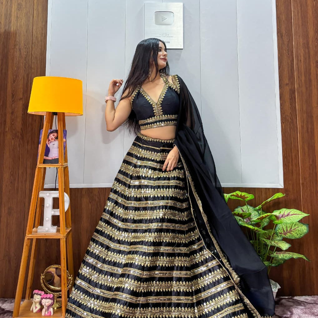 Black Heavy Kasturi Silk Lehenga