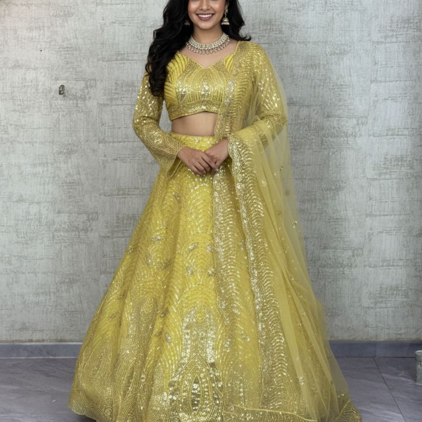 Premium Yellow Soft Net Lehenga