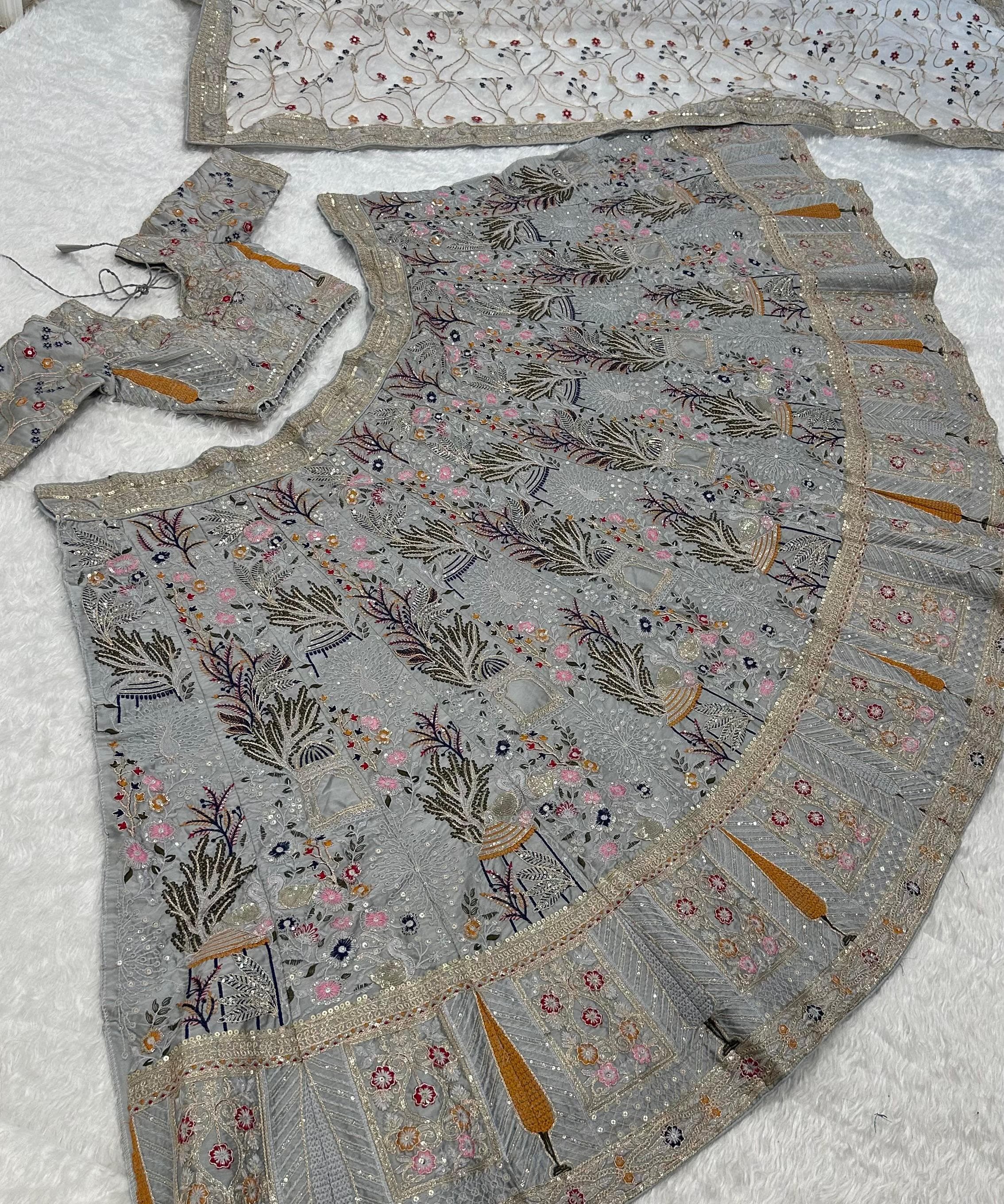 Beautiful Flower Embroidered Work Lehenga
