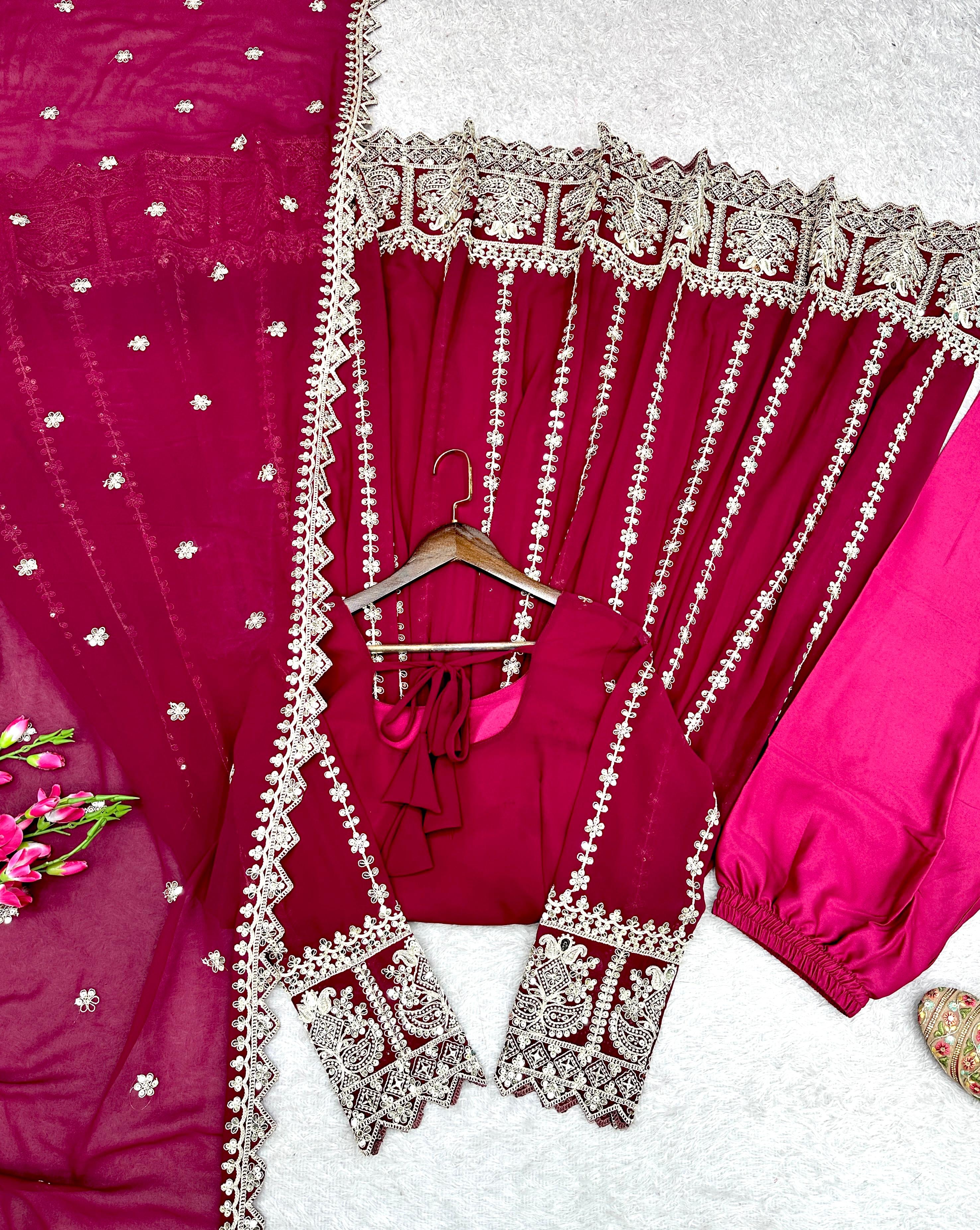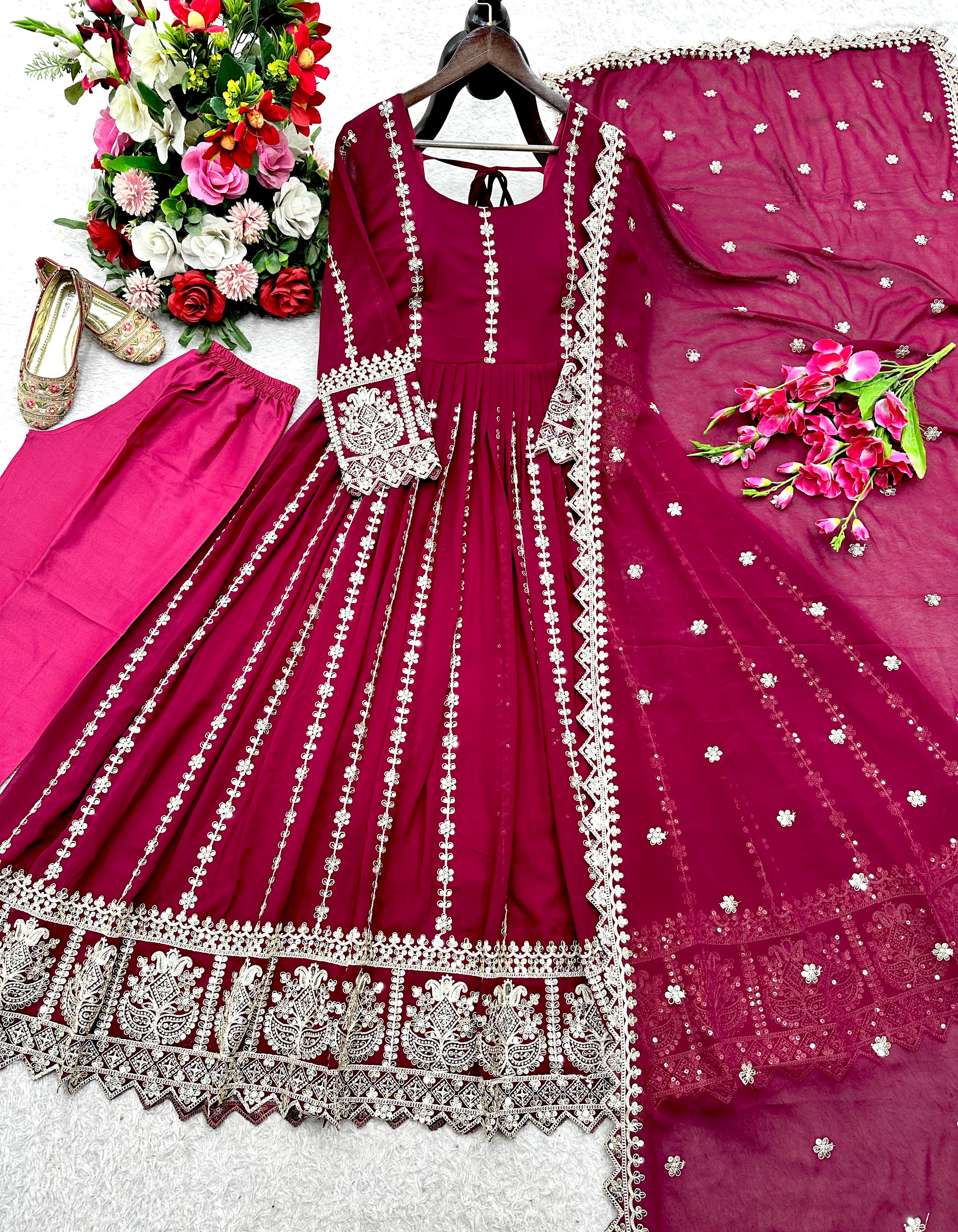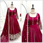 🩱*Gwon Fabric*🩱: Pure *Blooming Georgette* With Emrodery 5mm Siqwans&Coding Dori Work With Sleeves With(*Ped With Fency Latkan Dori*)