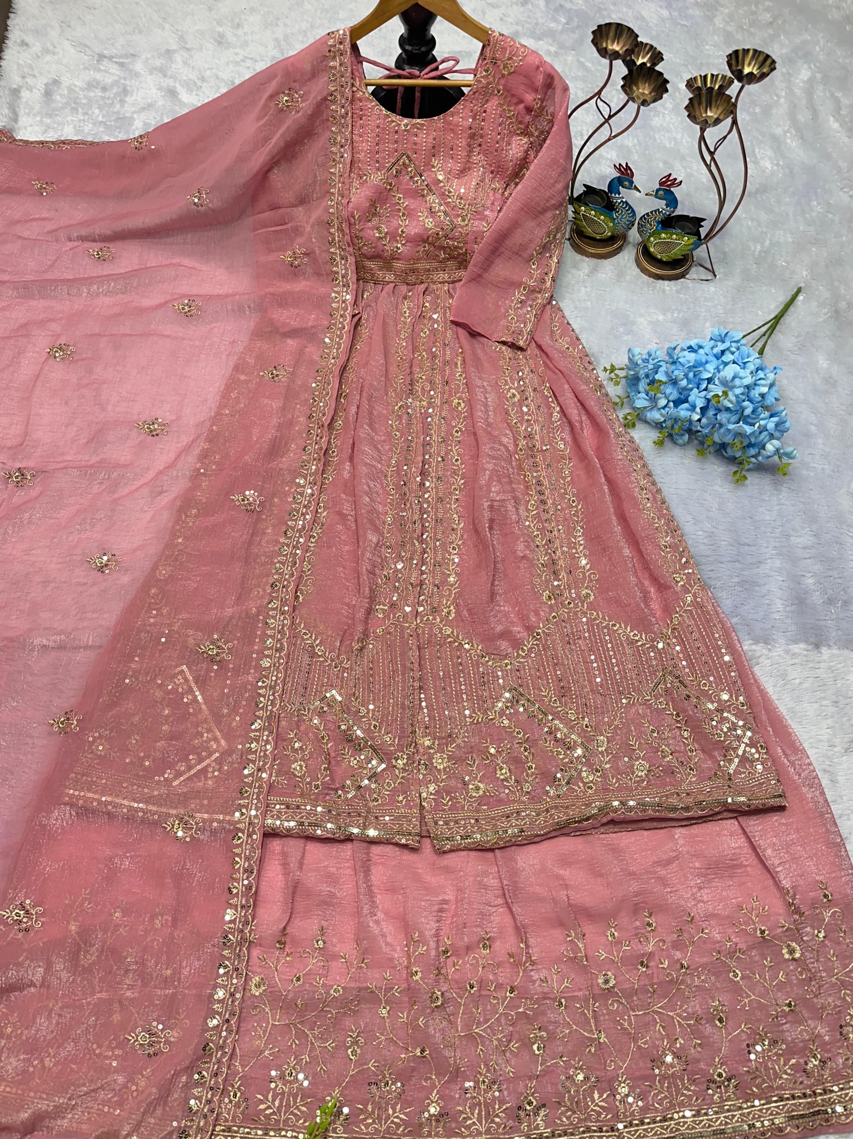 👗 *GOWN FABRIC* :HAVY CRUNCHI SILK WITH EMBROIDERY WORK AND FULL SLEEVES