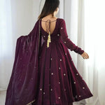 "Elegant Embroidered Sequence Designer Anarkali Three Piece Set"